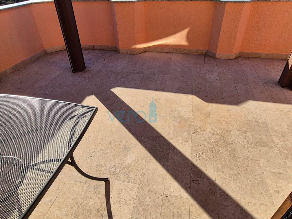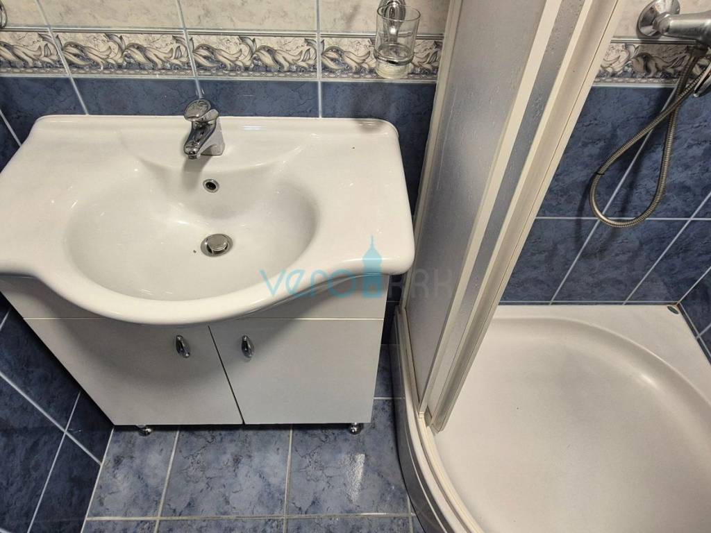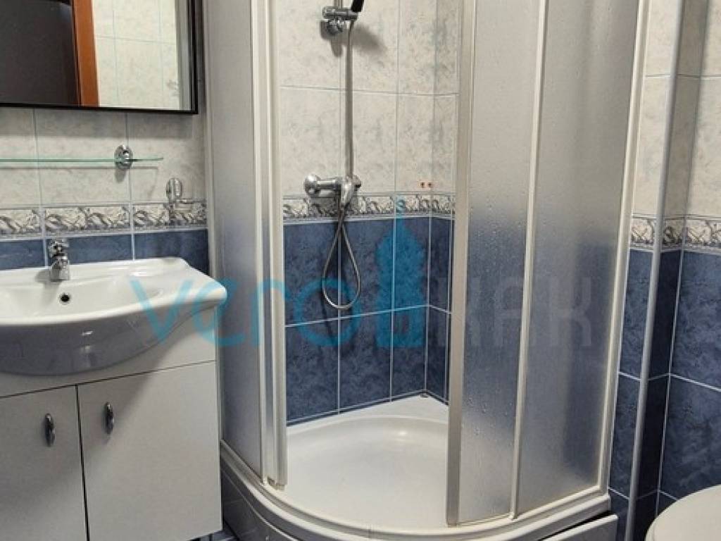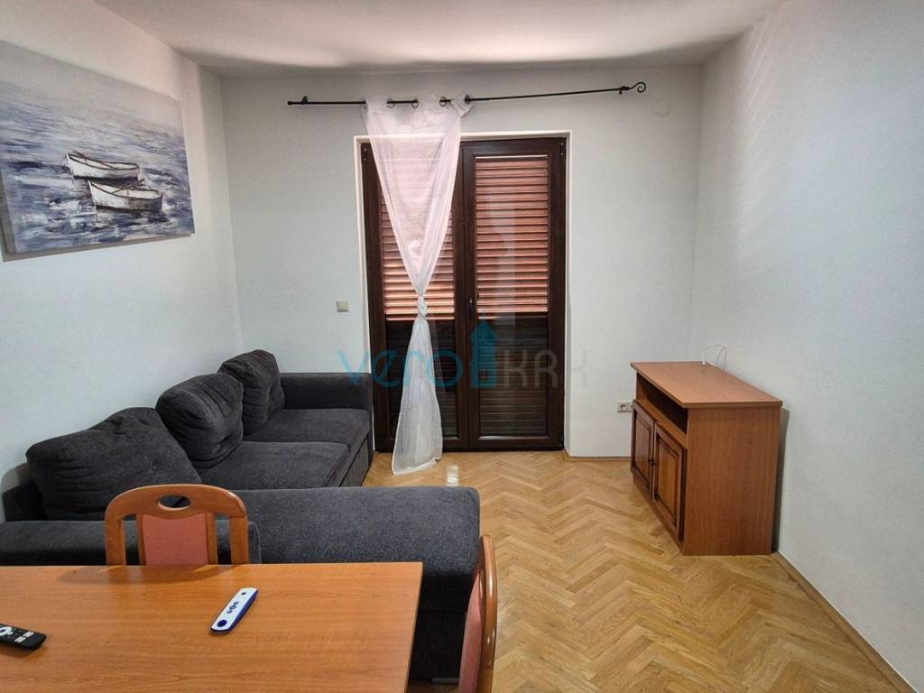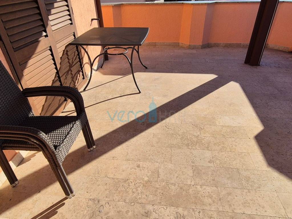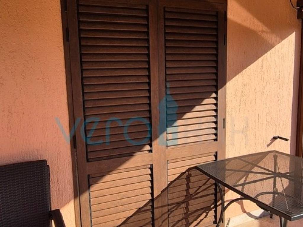 Neat and bright two-bedroom apartment with a total area of 48.10 m2 with a beautiful sea view is located in a multi-residential building with 6 apartments. It consists of an entrance, living room with kitchen and dining area, and access to a 6 m2 terrace with a new pergola, bathroom, and two bedrooms. The apartment includes a parking space in a landscaped yard. It is equipped with all appliances. The sea and beach are approximately 900 m away.