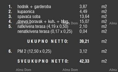 We are selling an apartment in a new residential complex in Štinjan. The complex consists of 19 two-story residential buildings. The location of the new residential complex is excellent, just a kilometer away from the center of Štinjan and in the immediate vicinity of the elementary school, kindergarten, Hidrobaza city beach, pharmacy, and only four kilometers from the center of Pula and three kilometers from the center of Fažana.Access to the residential complex is provided from an asphalted surface, within which all the necessary infrastructure will be located (electricity, water, sewage).Apartment marked 6B is located on the 1st floor of the building and consists of: hallway, living room with kitchen and dining area, bedroom, bathroom and terrace.What makes this project special is the architectural design of the facade of the residential buildings, and the green roofs that appear on the facade.Each residential unit is provided with the required number of parking spaces according to the urban plan of the city of Pula, dimensions 2.50m" x 5.00m". Each parking space is designed with a future connection to the electricity grid in order to connect electric vehicle chargers.This apartment has a parking space included in the price.We accept reservations!For additional information, please contact:Azra+385 91 611 5706+385 98 420 885azra@almadominvest.com