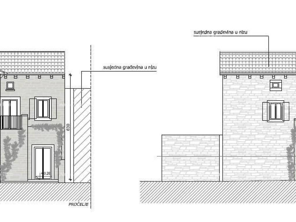 For sale is an old house/ruin with an approved reconstruction project, located on a plot of 95 m², situated in a small town near Sv. Lovreč and Tinjan. This property represents an ideal investment opportunity – the project is already completed, and the process of obtaining a building permit is underway.Basic information:Area of the existing ruin: 73 m²Yard: 22 m²Footprint of the existing building: 61.65 m² + external staircase 11.10 m²External dimensions: 11.24 x 5.26 m (staircase 7.21 x 1.81 m)Height to the eaves: 6.30 mThe reconstruction project envisions the construction of a family house on three levels (ground floor + first floor + attic), with one residential unit and access from the ground floor on the west side. It is planned to remove part of the external staircase for a more functional layout and a larger yard, while retaining the authentic character of the old Istrian house, adapted to modern living.This property offers a perfect opportunity to create a charming home according to your own desires – whether for family living, vacation, or as an attractive investment.For more information, please contact:Azra+385 91 611 5706+385 98 420 885azra@almadominvest.com