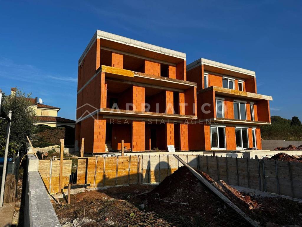 Poreč - Modern duplex with swimming pool A modern new house is for sale located in a quiet village near Poreč, just a few minutes drive from the center. The location offers an open view of the sea, a peaceful environment and good transport connections to all important amenities. The house was designed with an emphasis on a functional layout, open spaces and plenty of natural light. Large glass walls connect the interior with the environment and provide a view of the sea and the greenery surrounding the property. The property consists of four bedrooms, three bathrooms and an additional toilet. The ground floor is organized around a spacious living room with a fireplace, connected to the kitchen and dining room, which creates a pleasant and flowing living space. The house is located on a spacious plot of land that ensures privacy and the possibility of arranging the garden according to one's own wishes. The house is being sold in the unfinished phase at a price of 280,000, which allows the future owner to finalize the interior according to their own concept and standard. Due to its location, sea view and structure, the property is suitable for both residential and tourist rental investment. Two identical houses are for sale, with the option to purchase one or both properties. For additional information and details about the project, please contact us.