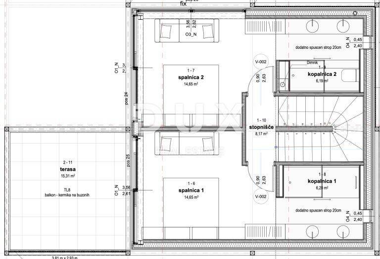 ISTRIA, UMAG - Eco-friendly villa with sea view Located in an idyllic, green environment in the immediate vicinity of Umag, this exclusive environmentally sustainable villa represents the ultimate combination of luxury, modern architecture and energy efficiency. This property is ideal for those who strive for a carefree life in harmony with nature, enjoying the benefits of the Mediterranean climate. TOP SUSTAINABLE CONSTRUCTION AND ADVANCED TECHNOLOGIES Ecological design: The villa is built from carefully selected, environmentally friendly materials, using innovative sustainable construction techniques. Heat pump and underfloor heating: Ensure minimal maintenance costs and a comfortable temperature throughout the year, providing superior energy efficiency. Large glass surfaces: Maximize natural light, providing a feeling of spaciousness and connection with the environment. PERFECT FLOOR PLAN FOR COMFORTABLE LIVING Open concept ground floor: Elegantly designed living room, dining room and kitchen create a fluid and airy space with direct access to the luxurious terrace and private pool. Complete privacy on the first floor: Two spacious bedrooms with their own luxurious bathrooms guarantee ultimate comfort and intimacy. Outdoor kitchen and terrace: An ideal place for unforgettable moments with family and friends, while enjoying Mediterranean specialties outdoors. Impressive swimming pool: Approximately 26.60 m² in size, perfect for relaxing and enjoying warm sunny days. Spacious storage room: A practical addition for storing garden furniture, seasonal equipment or sports equipment. Large parking lot: 77.24 m² in size, providing enough space for several vehicles. This exclusive villa is designed to provide maximum comfort, impeccable design and a sustainable lifestyle. Thanks to environmentally advanced solutions, low maintenance costs and a prestigious location, this is an opportunity not to be missed! Contact us now and secure your dream home in one of the most beautiful parts of Umag! Dear clients, the agency commission is charged in accordance with the General Terms and Conditions: www.dux-nekretnine.hr/opci-uvjeti-poslovanja ID CODE: 37067 Evan Beaković Agent s licencom Mob: +385 91 54 833 54 Tel: +385 99 640 8438 E-mail: evan@dux-nekretnine.hr www.dux-istra.com