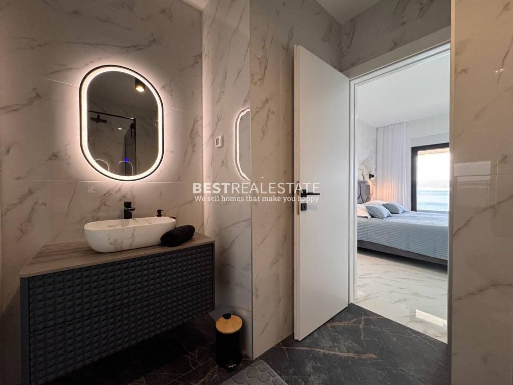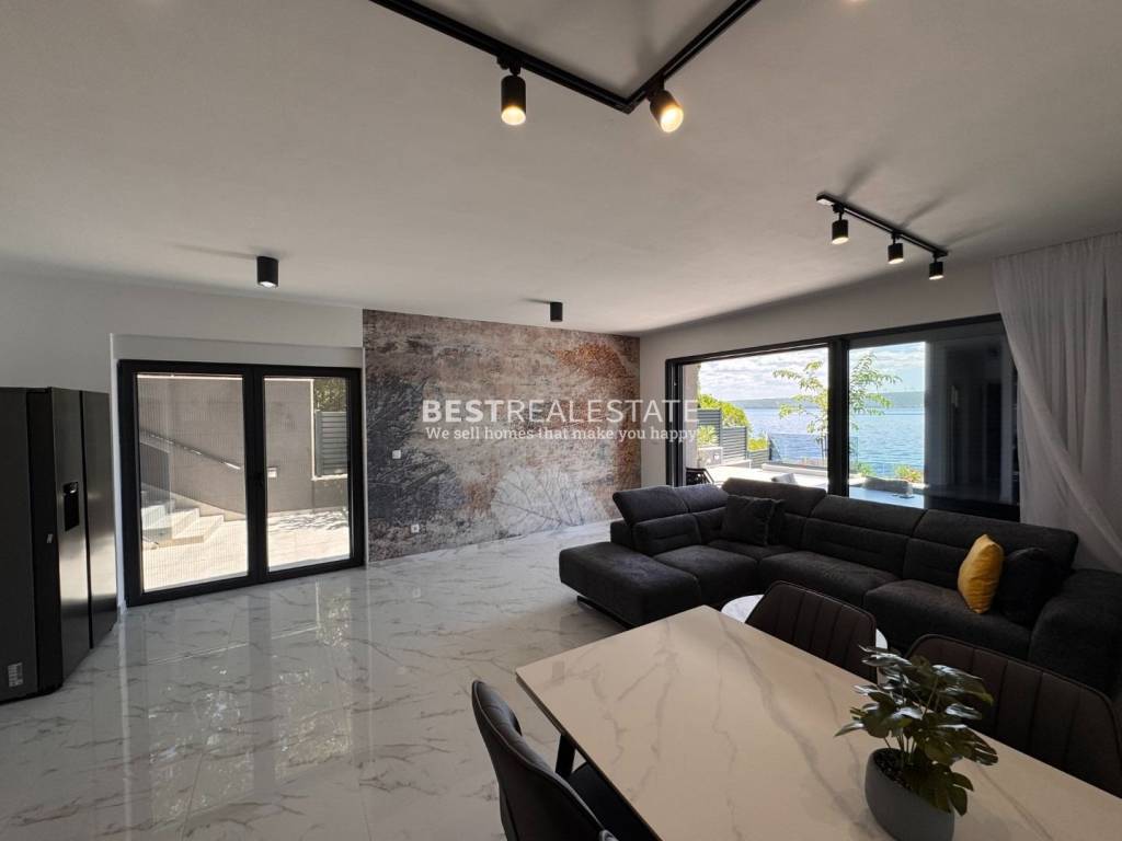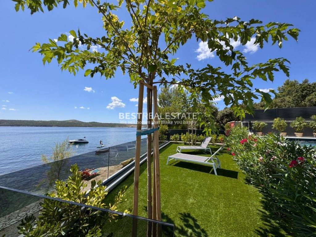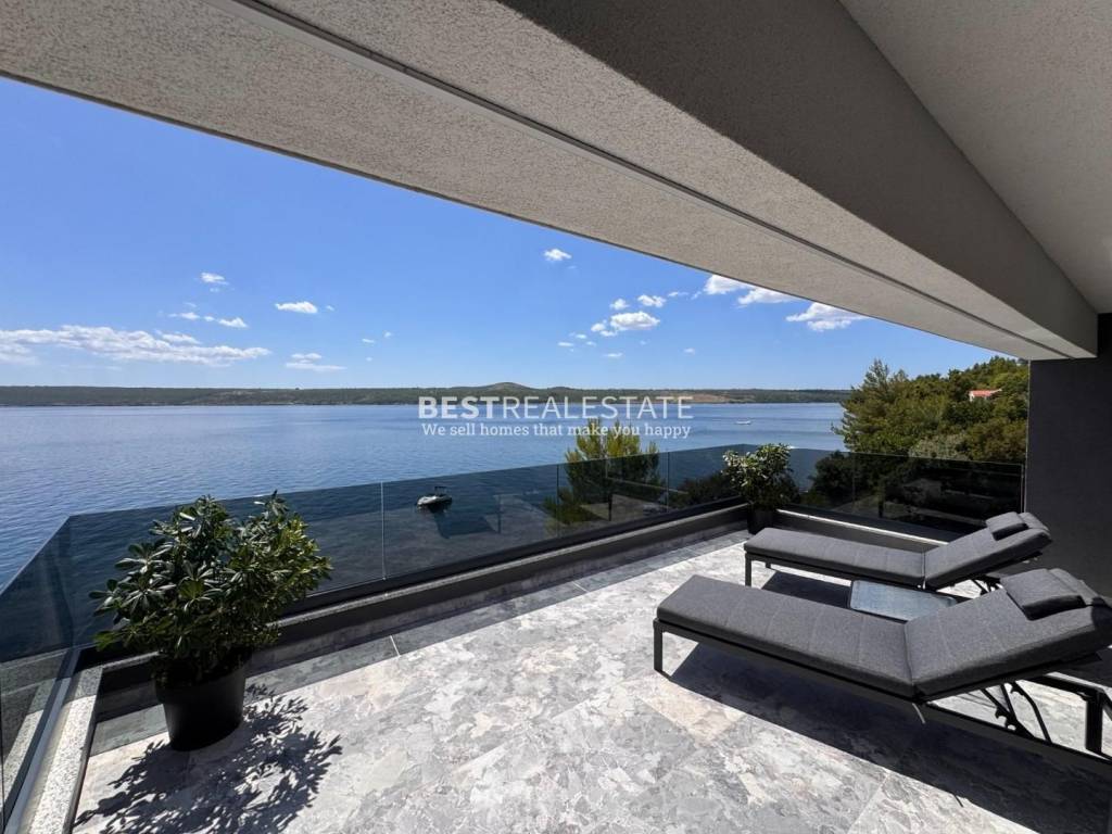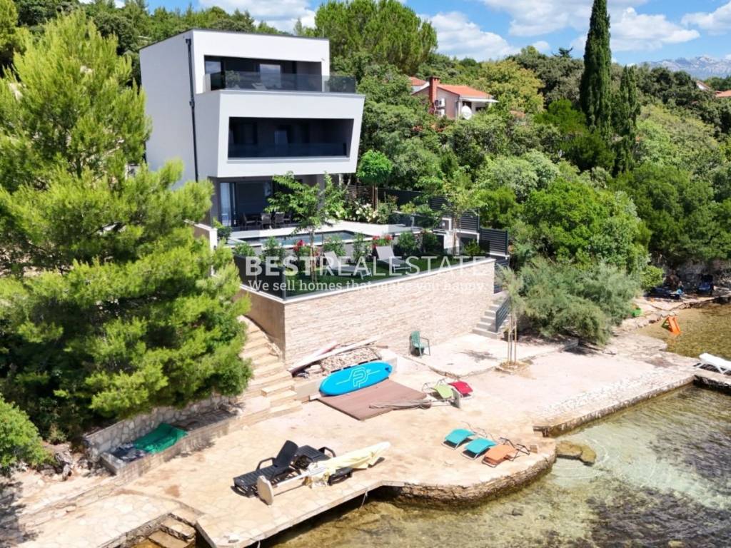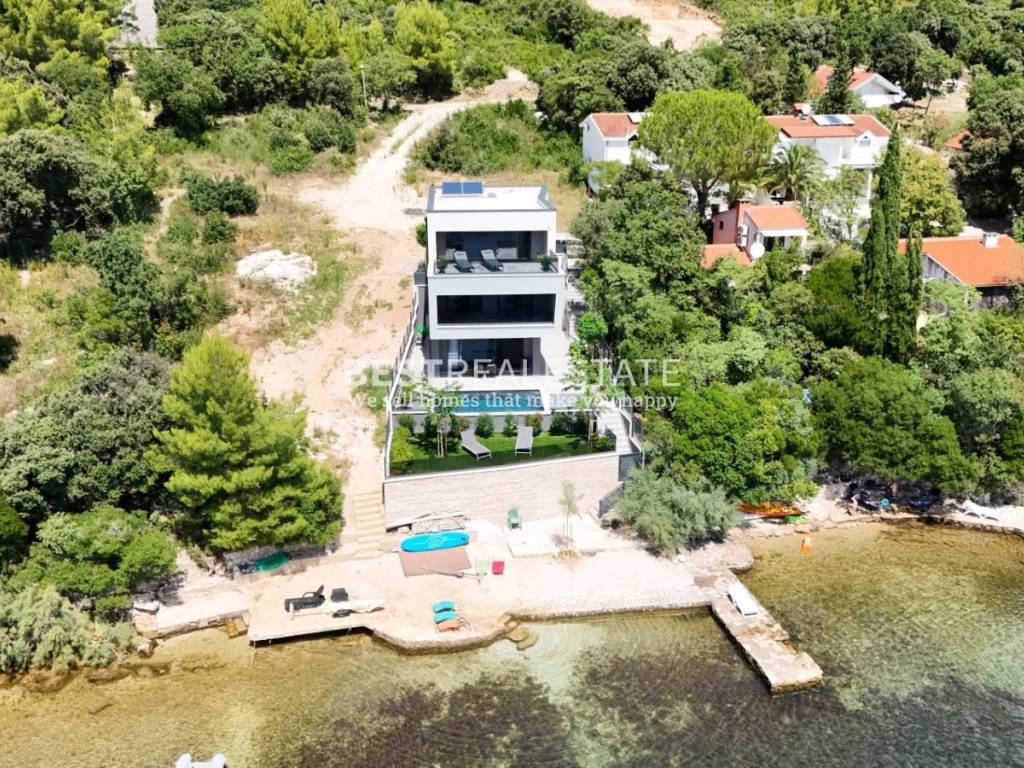 Prodaje se jedinstvena moderna vila smještena na samoj morskoj obali u mirnoj uvali, idealna za sve koji traže privatnost, eleganciju i dodir netaknute dalmatinske prirode.