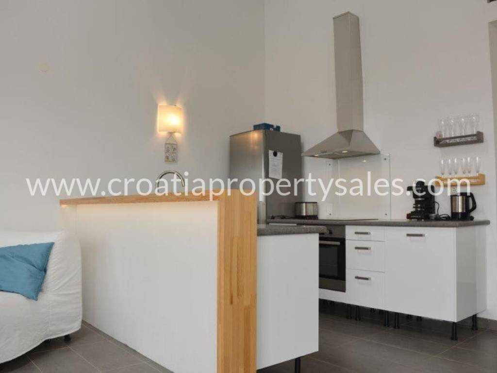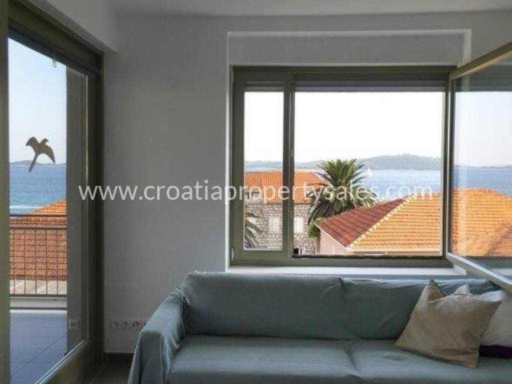 Duplex apartment with sea view.The apartment building is situated in the center of Orebic, near to the port - only 60 meters from the sea, in a peaceful culdesac close to all services and facilities. Orebic is a small and quiet town with rich vegetation and breathtaking mountains in one of the most beautiful parts of Croatia, in South Dalmatia. Sophisticated design, professional workmanship and the use of quality materials; these are the main advantages of the building and the apartment.The apartment house has been built (by the owner) for year-round stay, so it has good insulation (38 cm brick + 5 cm polistirol), air conditioning, and heating. The excellent southern slope offers full panoramic views. Access to this duplex apartment is via the forecourt terrace on the first floor. Entering the flat you step into the hallway where you find the two bedrooms, a large bathroom and a storage room. Going upstairs there is also a bathroom, a wide living room with kitchen and dining area connected to a huge terrace (20 sqm) with a beautiful open sea view. There is a mezzanine in the living room.