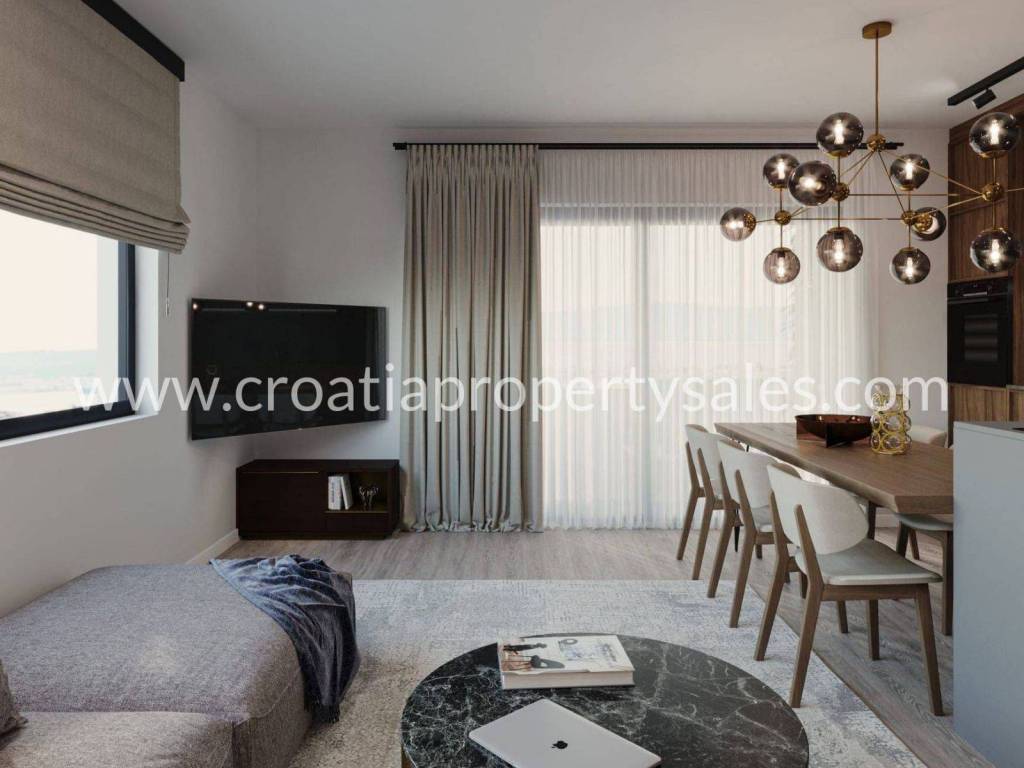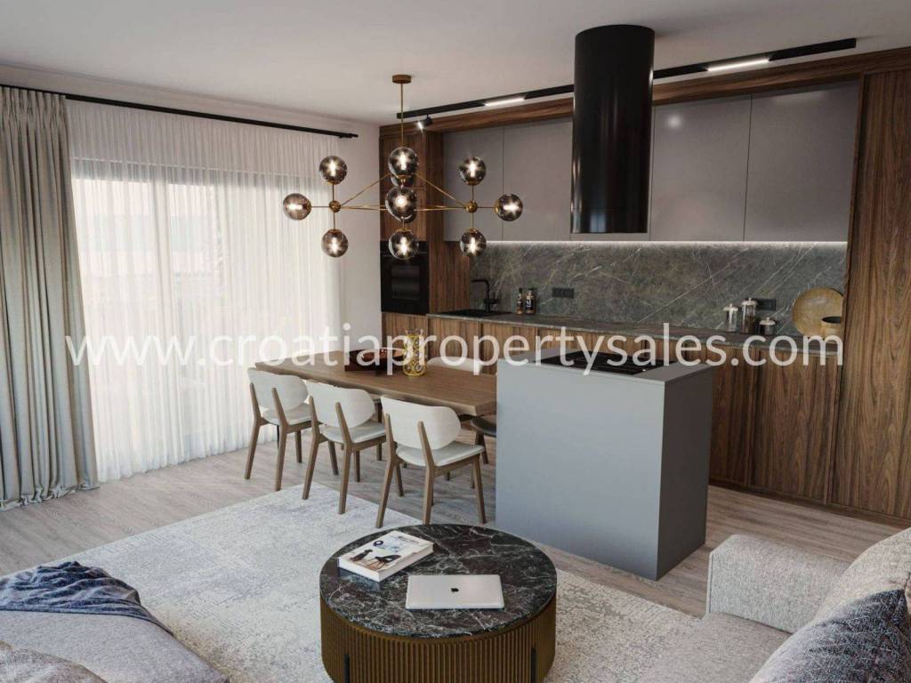 Two apartments in a new building.Two-room apartment on the first floor with a living area of 97.83 m2, which includes two covered terraces of 16.29 m2 and 7.40 m2, two parking spaces, and a storage room in the basement of the building of 3.57 m2. The total usable area of the apartment with accessories is 118.25 m2.Apartment S4 consists of a hallway, toilet, pantry, two bedrooms with attached bathrooms, wardrobe, kitchen, dining room and living room, as well as two covered terraces and two outdoor parking spaces.1ST FLOOR S4 - 118.25 m2 EUR 359,000.00Two-room apartment on the second floor of the building with a living area of 97.83 m2, which includes two covered terraces of 16.29 m2 and 7.40 m2, two parking spaces in the basement of the building, and a storage room in the basement of the building of 4.73 m2. The total usable area of the apartment with accessories is 126.50 m2.Apartment S6 consists of a hallway, a toilet, a storage room, two bedrooms with a bathroom, one of which has a wardrobe, a kitchen, a dining room and a living room, and two covered terraces. In addition to everything, the apartment includes a storage room and two parking spaces in the basement of the building, as well as a roof terrace above the apartment with an area of 108.08 m2.2ND FLOOR S6 126.50 m2 EUR 480,000.00The apartments are sold on a turn-key basis, but there is also an additional option for furniture at an additional cost.The planned completion of construction is at the beginning of December 2023.