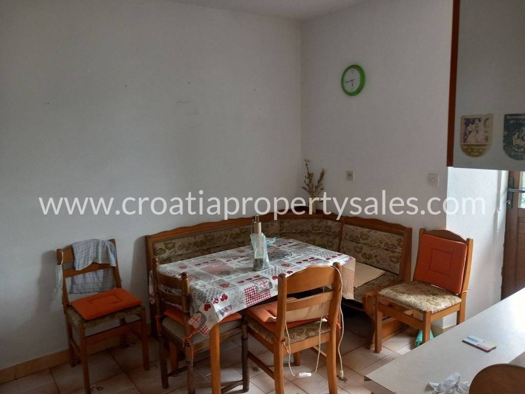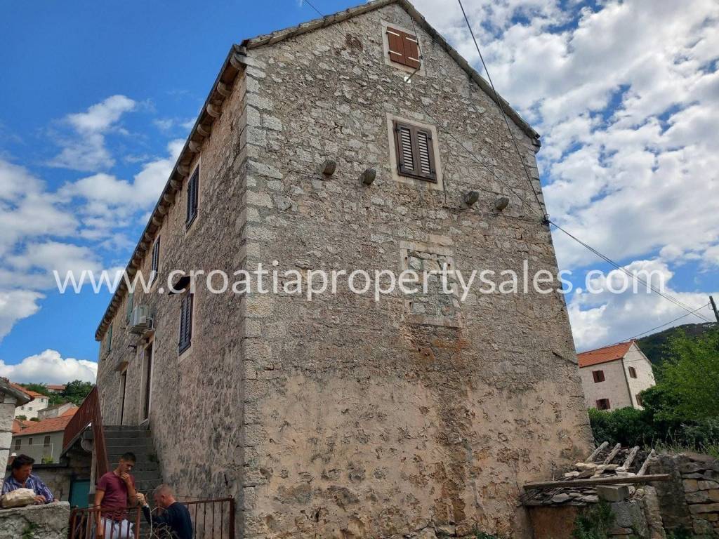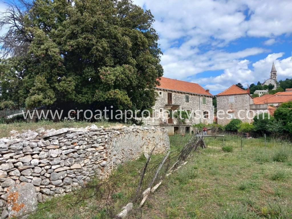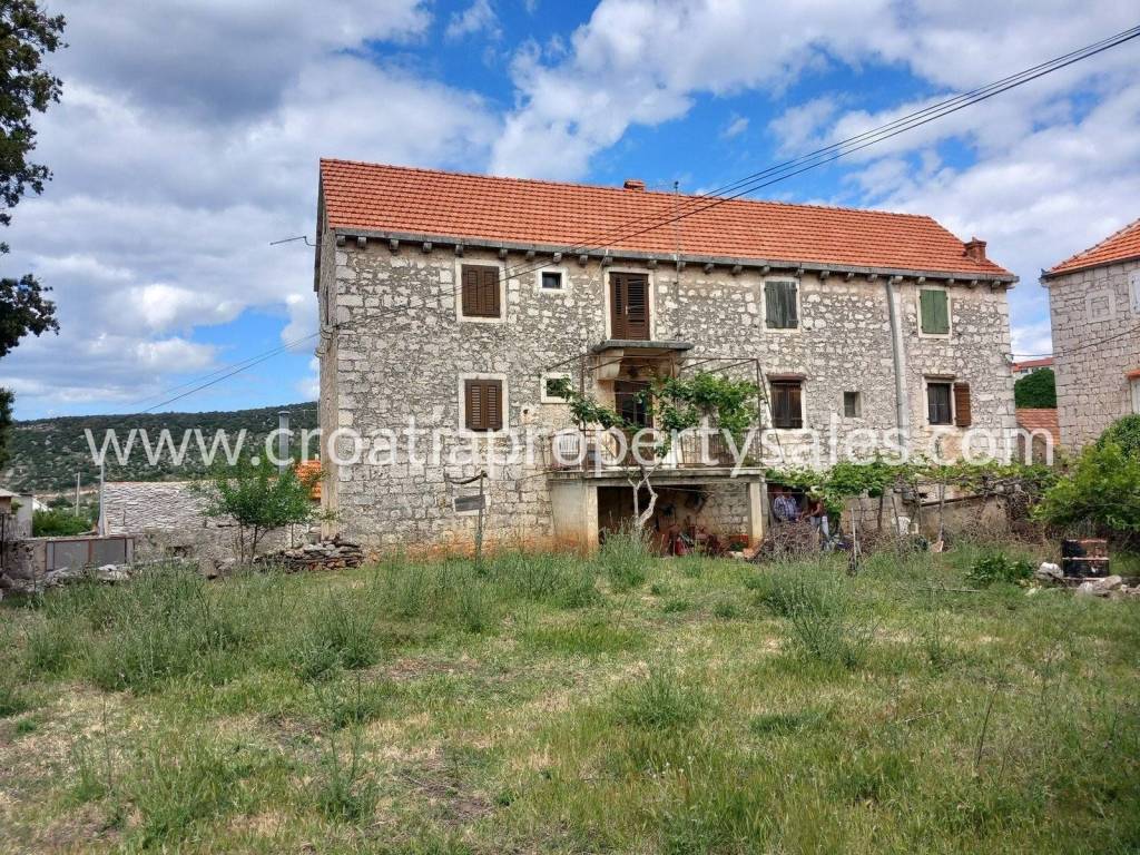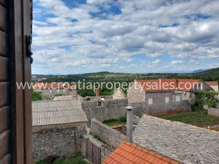 Property in the center of the town on a plot of 1,660 m2 with a large house, garage, stable and konoba.The property is fenced, the entrance is to a spacious yard with a garage and several parking spaces.The garage and storage rooms have a total of 40 m2, and in the yard there is a konoba with a fireplace.There is also an 80 m2 stable on the property with a large meadow behind. The main building is a stone house on three floors.The ground floor has 85 m2, and on the first floor there are two separate residential units.The western part on the first floor consists of a hallway, living room, bathroom, two bedrooms. An internal staircase leads to the second floor where there are three bedrooms and a bathroom.The eastern part of the house has not been renovated. It consists of the first floor with a kitchen, dining room and one bedroom, and three bedrooms on the second floor.