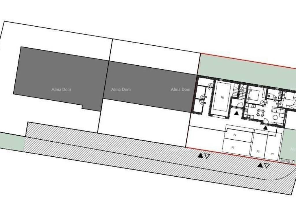NEW BUILDING – SMALL RESIDENTIAL COMPLEX UNDER CONSTRUCTION (3 BUILDINGS IN A ROW)For sale is a smaller residential complex under construction, consisting of three modern buildings in a row. Each building is designed as a residential unit with a total of four apartments, distributed across the ground floor and two upper floors.The apartments feature a functional layout, emphasizing comfort, natural lighting, and high-quality building materials. Each apartment comes with a parking space, and modern energy-efficient equipment is planned.Apartment A is located on the ground floor of building A3 and consists of: a living area with a kitchen and dining room, 2 bedrooms, a bathroom, a hallway, an uncovered terrace, and a yard. The complex is situated in a quiet location ideal for family living or as an investment for rental, with easy access to all essential amenities – shops, schools, public transport, and beaches.The project is currently under construction. The apartment includes a storage room and a parking space.For additional information, please contact:Azra +385 91 611 5706 +385 98 420 885 azra@almadominvest.com