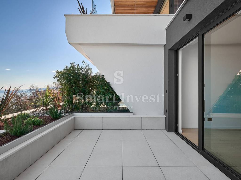 This premium property offers you modern design, luxurious elegance, privacy and comfort, and a spectacular view of the sea, and with its modern architectural style and the finest materials, it sets new standards of luxury. Thanks to its location in a quiet part of Opatija, you will enjoy a sense of privacy and peace and at the same time a stunning view of the charming coast of the Adriatic Sea.