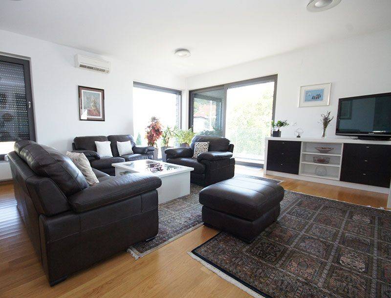 In the residential part of Samobor, on the slope of Giznik, on a plot of 1028 sqm, there is a modern family house - villa - architecturally well designed and built with selected materials.