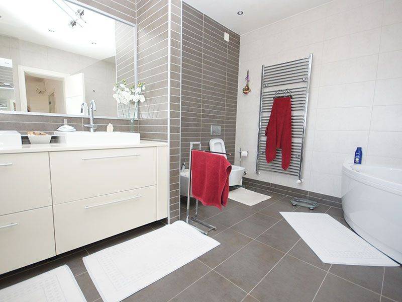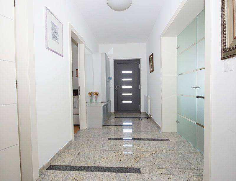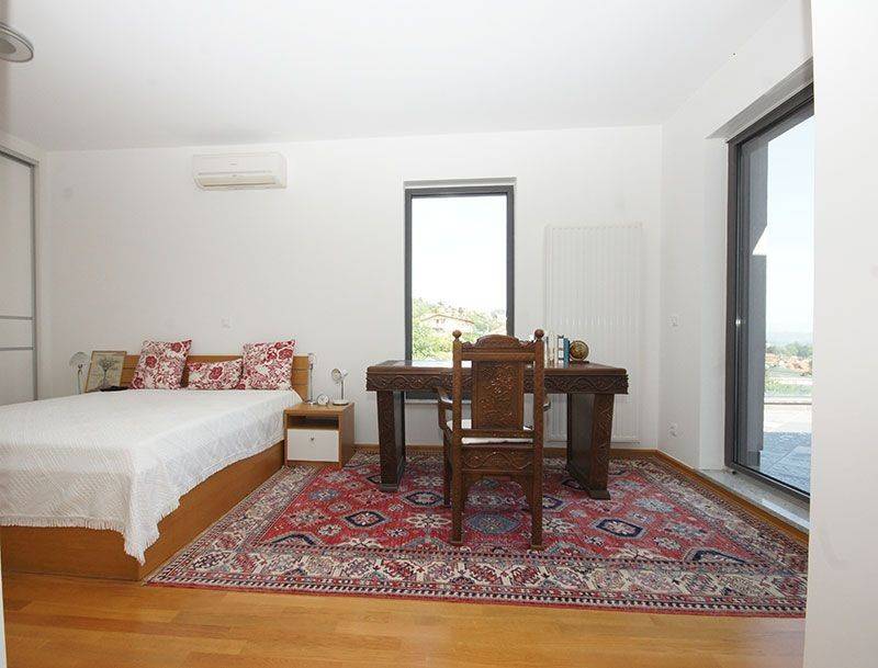 Upstairs there are two large bedrooms, two bathrooms, hallway and terrace. Each room has exit to the terrace.