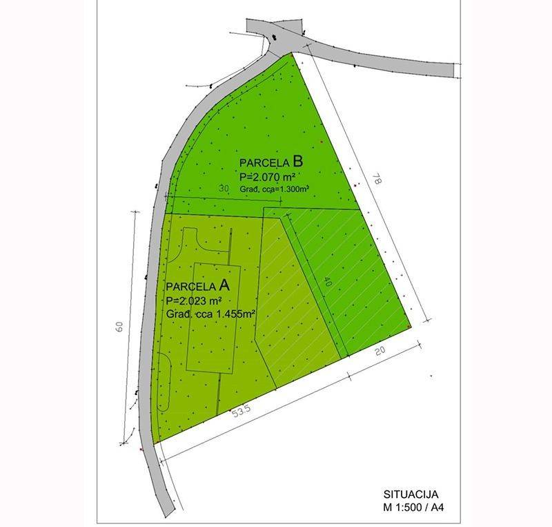 Prodaje se građevinska parcela površine 4092 m2 s koje se pruža prekrasan pogled na grad Zagreb. Zbog svoje površine istu je moguće podijeliti na dva gradilišta površine cca 2000 m2. Od komunalne infrastrukture moguće je priključenje na gradski vodovod, struju, plin i telefon.