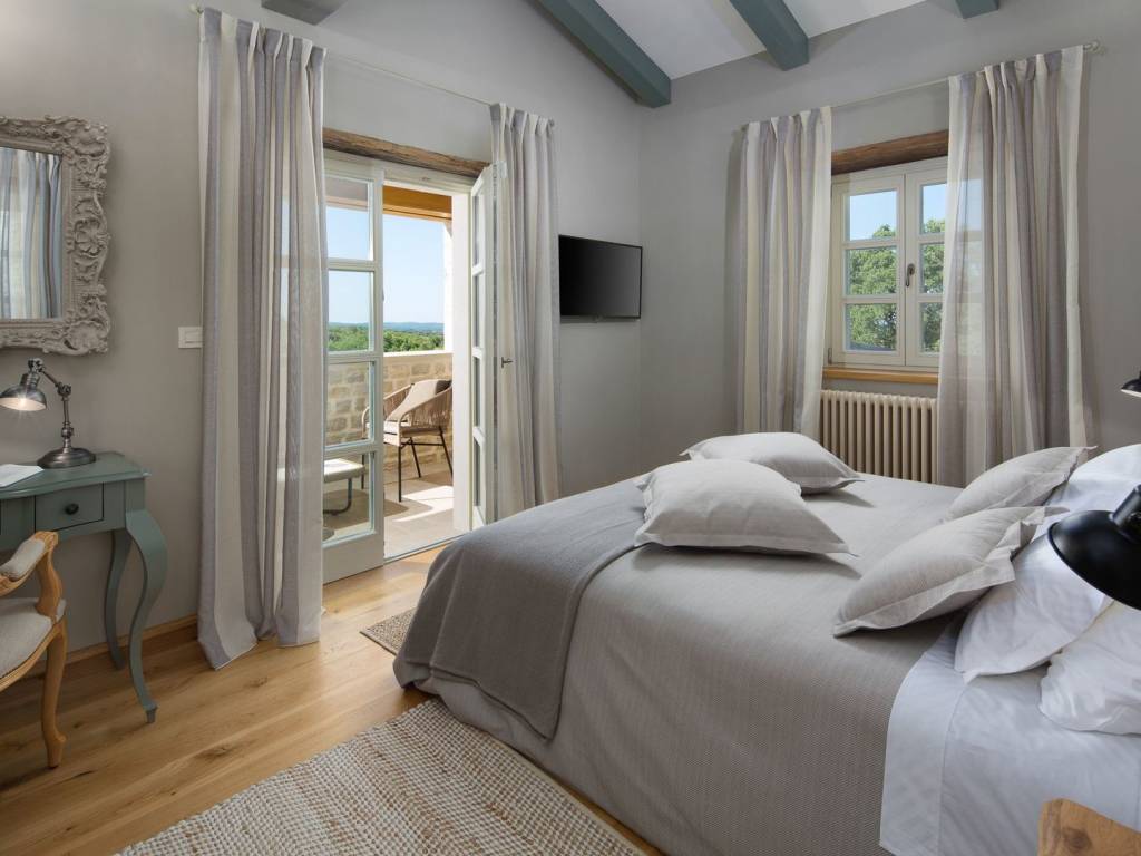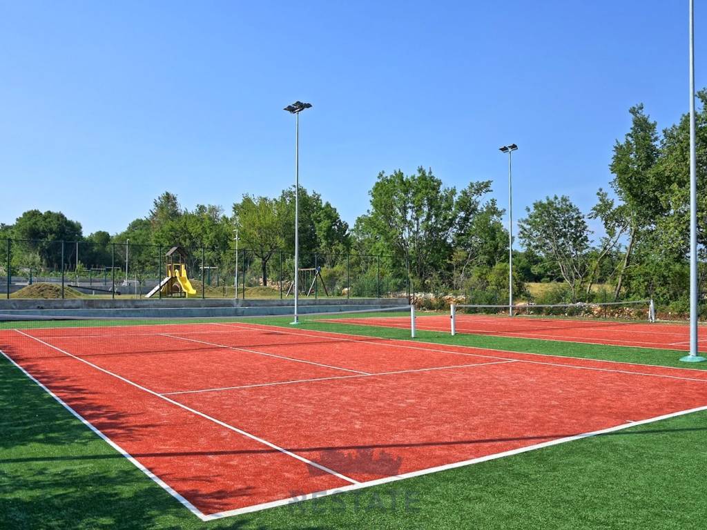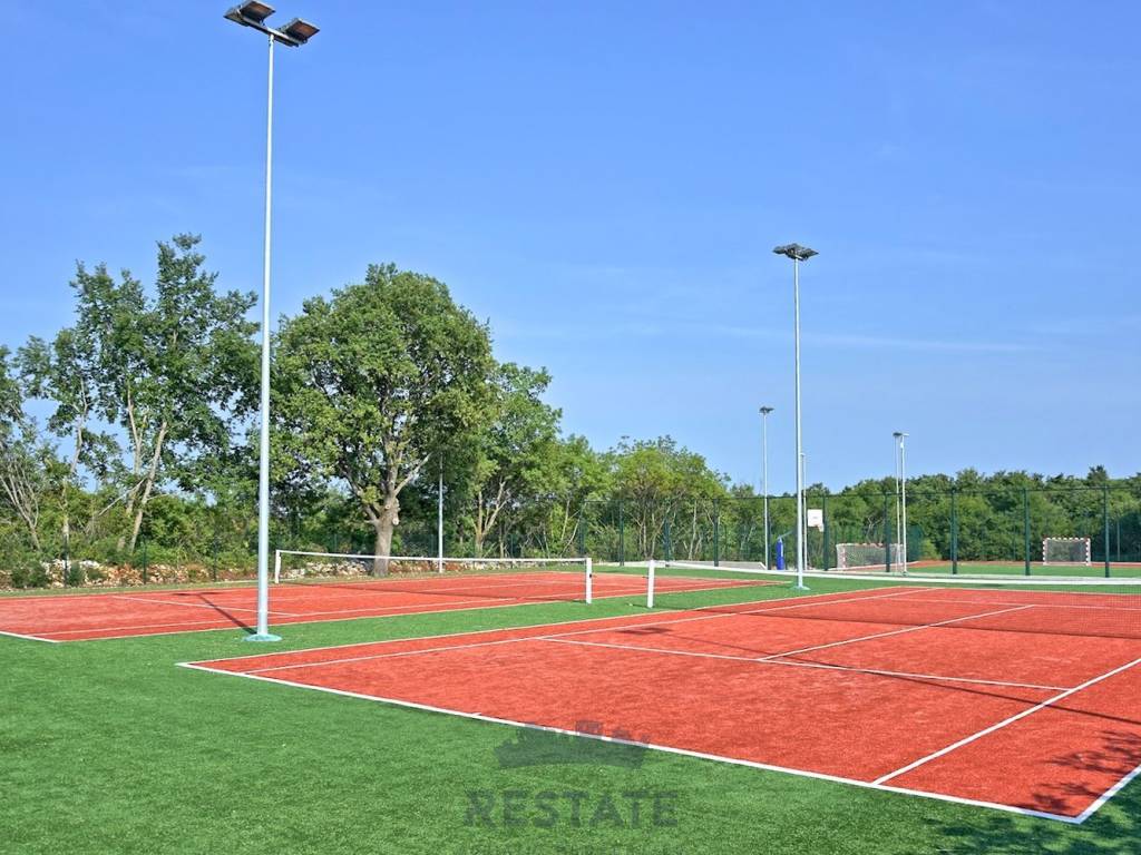 Luksuzna vila prostire se na impresivnoj površini od 372 m2, okružena zelenilom u prostranom vrtu ukupne veličine 1611 m2. Ova vila vintage šarma plijeni poglede svojim prozračnim prostorima, idealnim za velika (obiteljska) okupljanja. U prizemlju se nalazi dnevni boravak s kaminom, blagovaona s prostranim stolom za deset osoba, moderna rustikalna kuhinja, dvije spavaće sobe s vlastitim kupaonicama, jedna s bračnim krevetom, a druga s dva odvojena kreveta. Na 1.katu nalaze se tri prostrane dvokrevetne sobe, svaka sa svojom kupaonicom i bračnim krevetom (od kojih dvije imaju izlaz na terasu s koje se pruža šarmantan pogled na more i slikoviti Rovinj). Na vrtu se nalaze bazen od 67 m2, ljetna kuhinja, kupaonica, solarni tuš i parking za 4 automobila. Vila impresionira ne samo luksuznim interijerom i vrtom, već i sportskom zonom koja uključuje višenamjensko igralište za rukomet, košarku i nogomet, odbojkaško igralište, dva teniska terena, boćalište i vanjski fitness centar – samo neke od pogodnosti koje ovu vilu čine veličasnom. Tu je i privatni eko vrt sa svježim i zdravim povrćem.