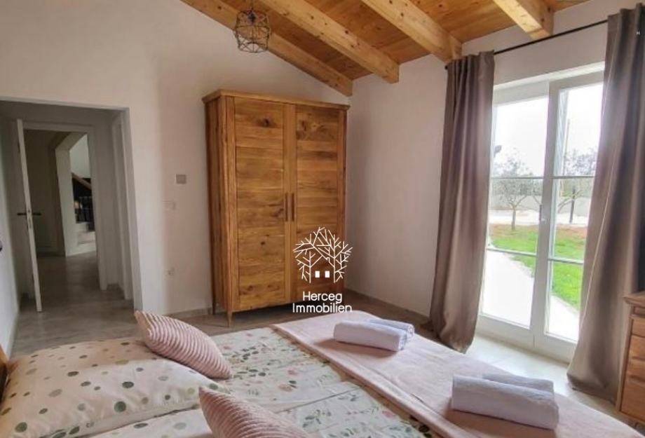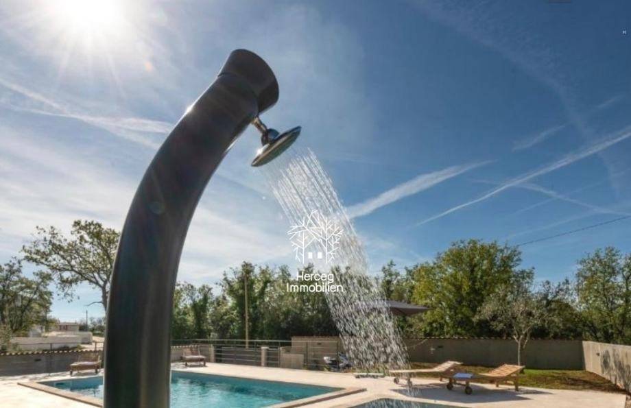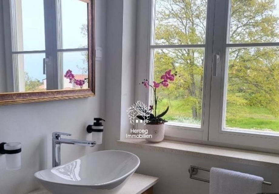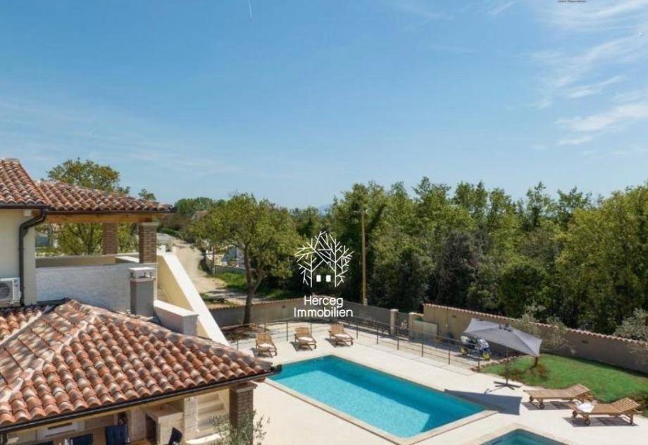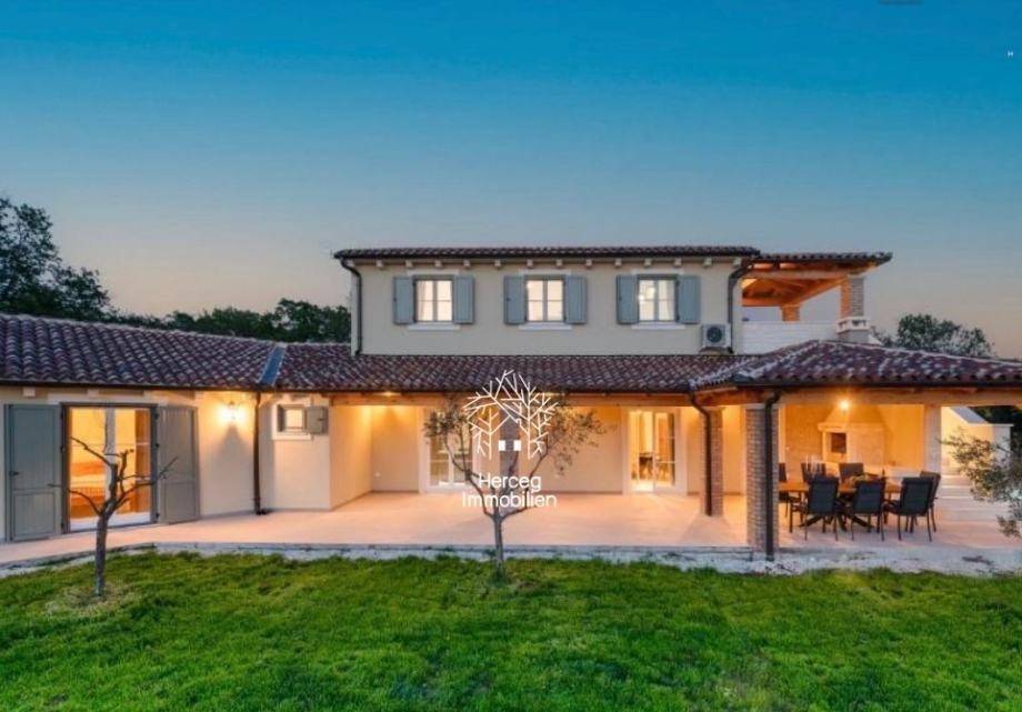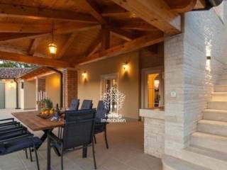 Na prodaju je prekrasna vila s 4 zvjezdice povrsine 280 m2, udaljena svega nekoliko minuta hoda od mora, smjestena u mirnom okruzenju koje osigurava potpunu privatnost. Vila raspolaze sa: • 4 prostrane spavace sobe • 4 elegantne kupaonice - svaka spavaca soba ima vlastitu kupaonicu stilski i kvalitetno uredenim interijerom • mirnim i ekskluzivnim ambijentom