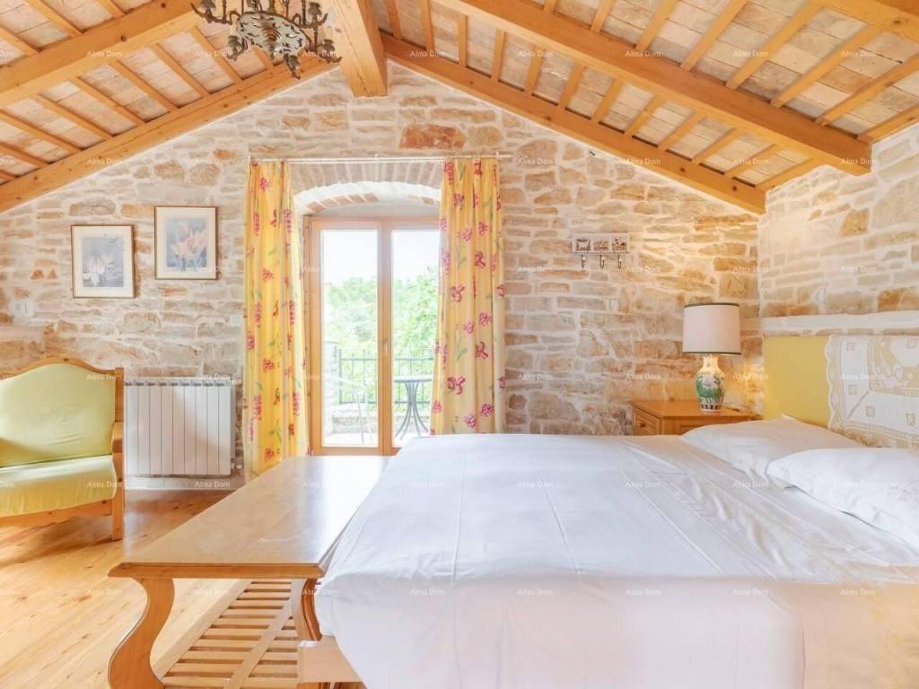 Two stone houses with a swimming pool, Istria, 20 km from Pula, 2.5 km from the sea. Beautifully renovated and furnished, sea view, with terraces and porches. 7 bedrooms with private bathrooms, air conditioning on the upper floors, 2 kitchens and 2 living rooms, barbecue, private parking.This is a single property consisting of 2 stone buildings with sea and pool views. the garden is partly in the shade of figs and yellow plums that ripen alternately from May to October. The garden is located between two buildings and allows you some privacy even if the house is located in the village. There are two tables outside that allow you to meet in the shade of the porch. 5 rooms have a private outdoor space that also allows you to isolate yourself from others.Info: Azra +385 91 611 5706azra@almadominvest.comAlma +385 98 420 885
