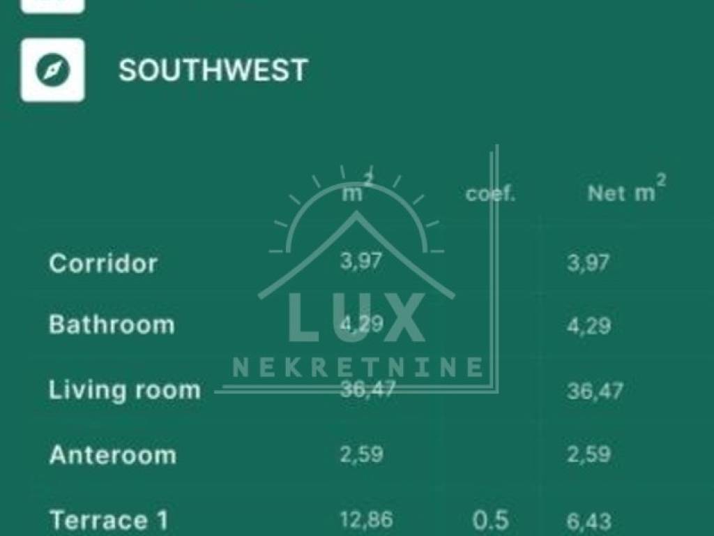 The orientation of the apartment is SOUTHWEST.