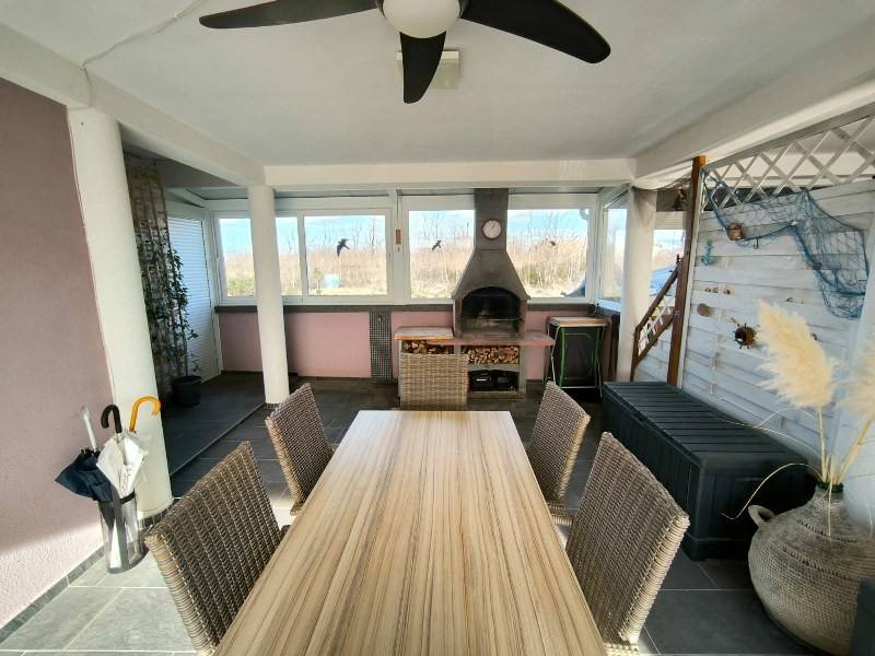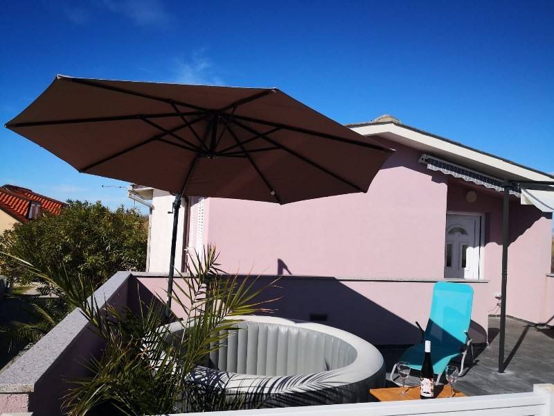 Jedinstvena prilika: odlična kuća na mirnoj i lijepoj lokaciji u Hrvatskoj! Prizemlje: • Terasa: Prostrana terasa od 30 m², okružena zelenilom i palmama. Veliki prozori stvaraju ugodno i svijetlo okruženje, idealno za opuštanje. • Apartman: Apartman od 40 m² sa dnevnim boravkom, spavaćom sobom, odvojenom kuhinjom i kupaonicom (WC + tuš). Apartman je opremljen svim sadržajima: klima uređajem, stropnim ventilatorima, infracrvenim grijačima, sustavom za povrat topline i kaminom koji pruža toplinu i ugođaj i u hladnijim danima. Gornji kat (1. kat): • Apartman: Apartman od 40 m² s namještenim dnevnim boravkom, spavaćom sobom, odvojenom kuhinjom i kupaonicom. • Terasa: Velika terasa od 30 m² sa sunčanim stolom za blagovanje, jacuzzijem i prekrasnim pogledom na Velebit i okolnu prirodu. Renoviranje: Nova pvc stolarija postavljena 2024. Renovirana kupaonica i kuhinja na katu. Idealne prilike: Kuća je savršena za stalni boravak, odmor ili poslovne svrhe. Područje je u velikoj potražnji za kratkoročnim smještajem ljeti, što ovu nekretninu čini idealnom za ostvarivanje prihoda od najma. Lokacija: Kuća se nalazi u Privlaci, predio Sabunike , samo 1200 m od najbliže pješčane plaže, koja se spaja s poznatom Kraljičinom plažom (najduža pješčana plaža u Hrvatskoj, 3,5 km, s područjem ljekovitog blata). U blizini se nalazi nekoliko plaža: plaža FKK, plaža Mletak, Zaton i izletišta Petrčane. Obližnje atrakcije i usluge: • Povijesni Nin (2 km) • Grad Zadar (18 km) • Zračna luka Zadar (28 km) • Nacionalni park Paklenica, Vransko jezero, otok Pag i još mnogo toga. U blizini se nalaze i trgovine (Spar, Plodine, Konzum i dr.), pekare, restorani, ljekarne i medicinske službe. Zašto odabrati ovu kuću? Ova nekretnina nudi mir i privatnost, a istovremeno se nalazi na idealnoj udaljenosti od popularnih destinacija i plaža u Hrvatskoj. Izvrsna prilika za stvaranje doma za sebe ili zaradu tijekom vrhunca ljetne turističke sezone!