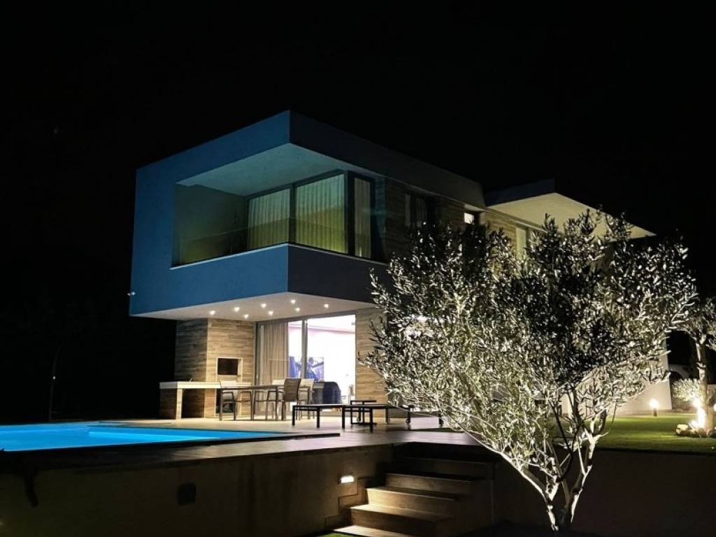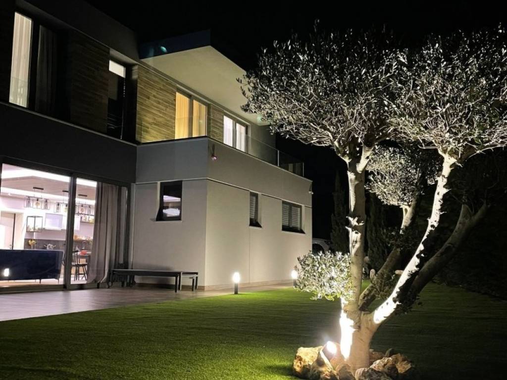 The villa is characterized by an excellent room layout , modern design , quality materials , air conditioning of all rooms , underfloor heating , video surveillance , alarm system , smart system management , ALU joinery , quality furniture .