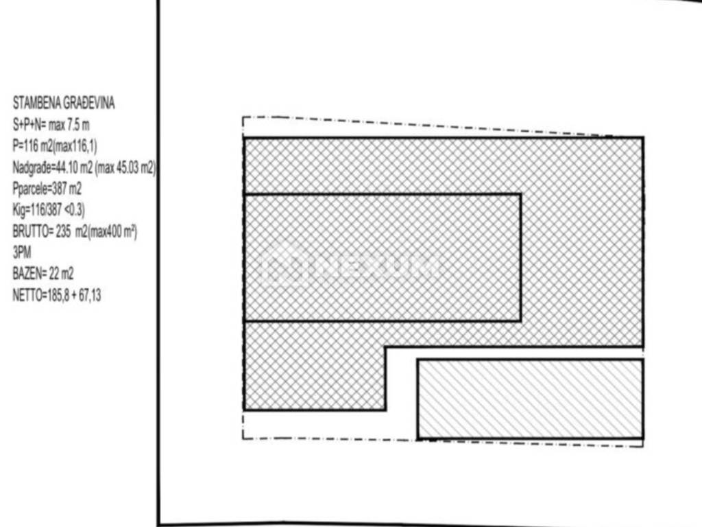 Prodaje se građevinsko zemljište površine 451 m² s izdanim dozvolama i gotovim projektom za izgradnju moderne vile s četiri spavaće sobe.