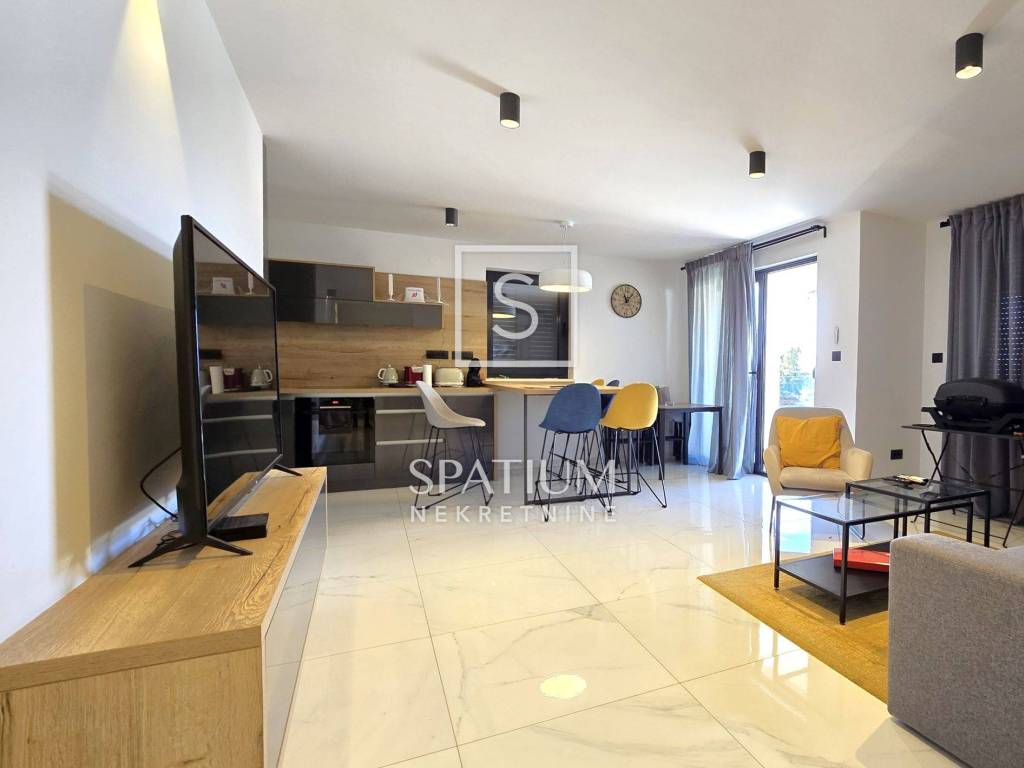 PUNAT, we are offering an apartment with a total area of 77.53m, which consists of an entrance hall, two bedrooms, a bathroom, a toilet and a living room with a kitchen and dining room. The property has a landscaped garden area of 222.54 m2 where there is a heated swimming pool with a sun deck and a place for grilling and resting, which is in an ideal position due to the natural shade. From the living room there is access to the terrace, which leads down to the garden. The apartment has two parking spaces and a storage room. Air conditioners (multi split system) and electronic card locks are installed in each room. First-class ceramics, aluminum exterior joinery and high-quality custom-made furniture were installed. The fully furnished and equipped apartment is ready for immediate occupancy and ready for the tourist season, residence or weekend stay. An additional advantage is the location of the property, which is a few minutes' walk from the center of town and from the first organized beaches. Punat is a picturesque place located on the island of Krk in Croatia. It is located on the west coast of the island, near the town of Krk. It is known for its natural beauty, rich cultural heritage and tourist attractions. One of the most important features of Punat is its beautiful natural harbor, which is one of the largest and safest on the Adriatic. The port of Punat is popular among sailors and allows for easy berthing of ships of various sizes. In Punat itself you can explore narrow streets, traditional stone houses and enjoy the Mediterranean charm. The main square is the central place where the church of St. Dunata from the 9th century. This Romanesque church is one of the oldest on the island of Krk and has significant historical importance. Punat is also known for its beautiful surroundings. There is a beautiful sandy beach nearby, which is perfect for sunbathing and swimming. There is also a promenade along the sea that leads to Preko Mor, a small island connected to the mainland by a bridge. On Prek Moru you can visit the Franciscan monastery that dates back to the 15th century. In short, Punat is a charming place on the island of Krk with beautiful nature, rich cultural heritage and opportunities for outdoor activities. Visitors can enjoy a nautical experience, explore the picturesque streets, relax on the beach or visit the nearby island of Košljun. For other information, please contact us with confidence. Azalea Kegalj Licensed agent +385 95 905 5464 azalea@spatium.hr Spatium nekretnine +385 51 272 903 info@spatium.hr