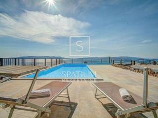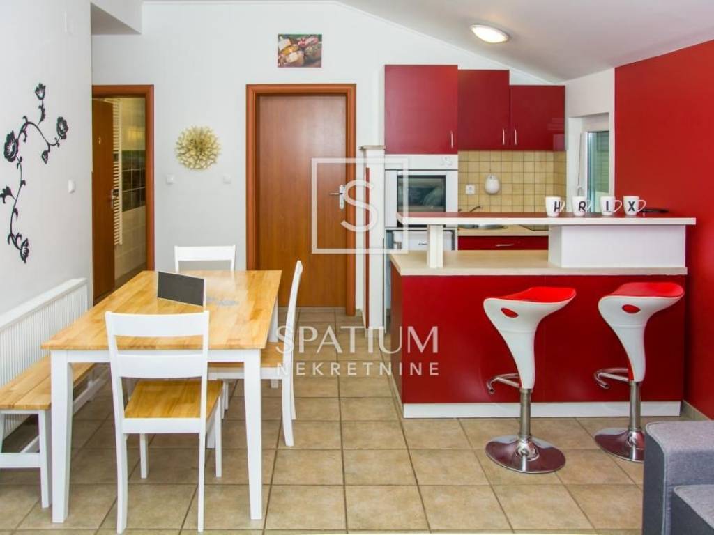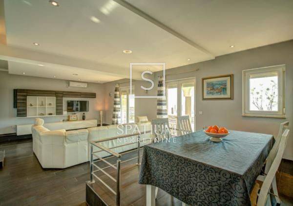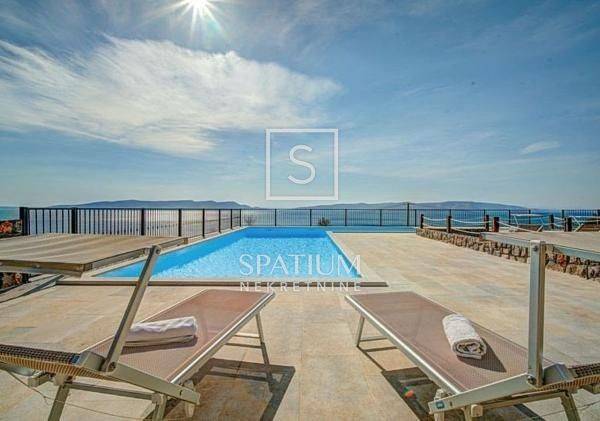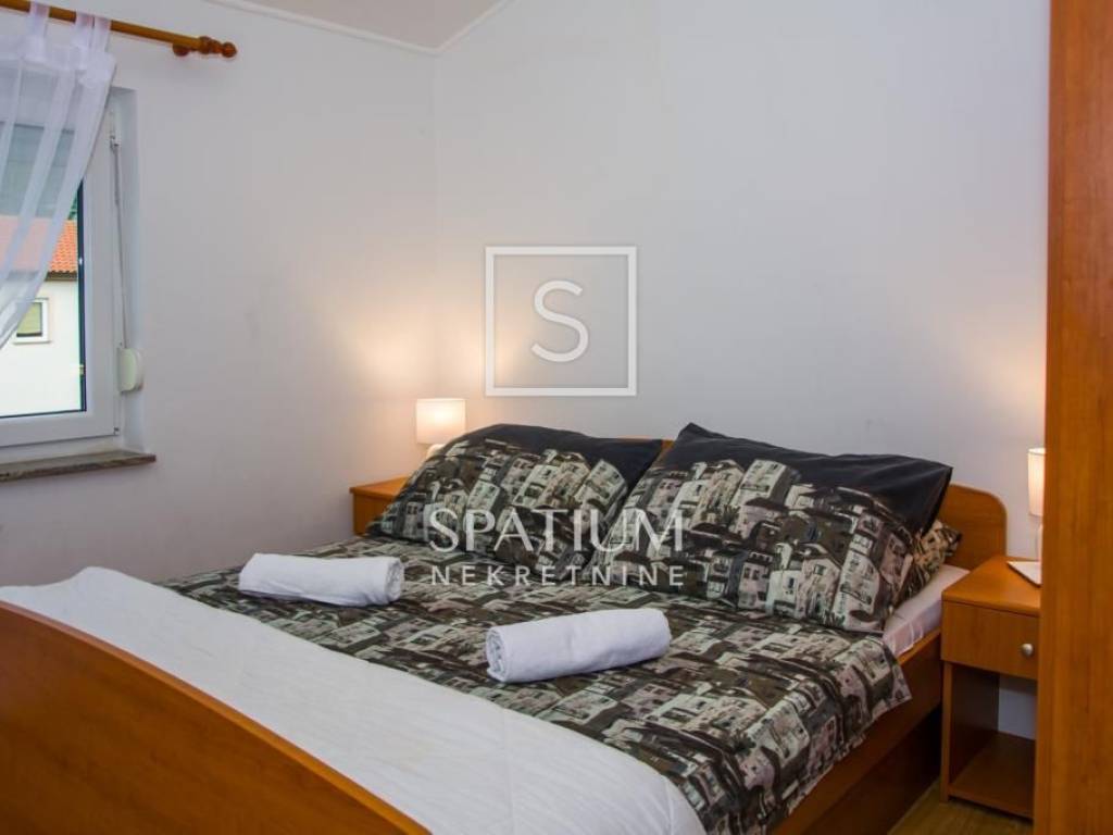 SVETI JURAJ, SENJ, we offer a detached apartment house with a swimming pool and a beautiful view of the sea. Total area 450m2, consists of ground floor and two floors, five apartments. Ground floor: comfortable two-room apartment, air-conditioned, floor heating, pellet heating possible. 1st floor: two two-room apartments with terraces. 2nd floor: two two-room apartments with terraces. The apartments are fully furnished, air-conditioned, prepared for central heating. Inside the spacious and beautifully landscaped garden there is a 64m2 swimming pool, a sundeck, a summer kitchen with a barbecue, a garage, a storage room and a parking space for five vehicles. An excellent choice for a family business.
