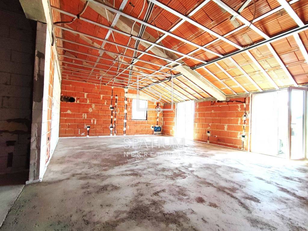 On the first floor, there are four residential units (three in shell condition), collectively around 160 m², while the second floor is being converted into a spacious penthouse with three ensuite bedrooms, an open-plan living room, kitchen, dining area, and a large covered terrace. The planned fixtures include underfloor heating via heat pump, ensuring comfortable year-round living. Both upper floors boast two generous terraces on one side and two balconies on the opposite side, offering abundant natural light and outdoor space.