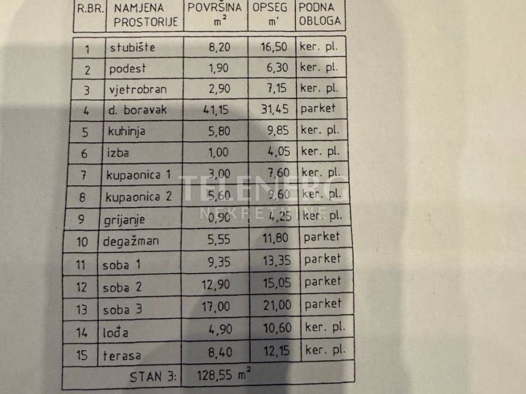 The apartment is located in a block of 3 apartments, living area 128 m2 on the 1st floor. The apartment consists of a large living room with dining area, three bedrooms, kitchen + pantry, large bathroom, smaller bathroom with shower, 2 balconies.