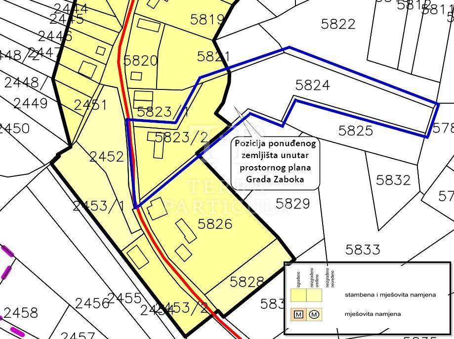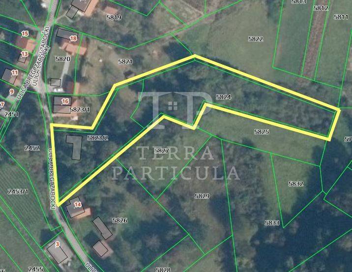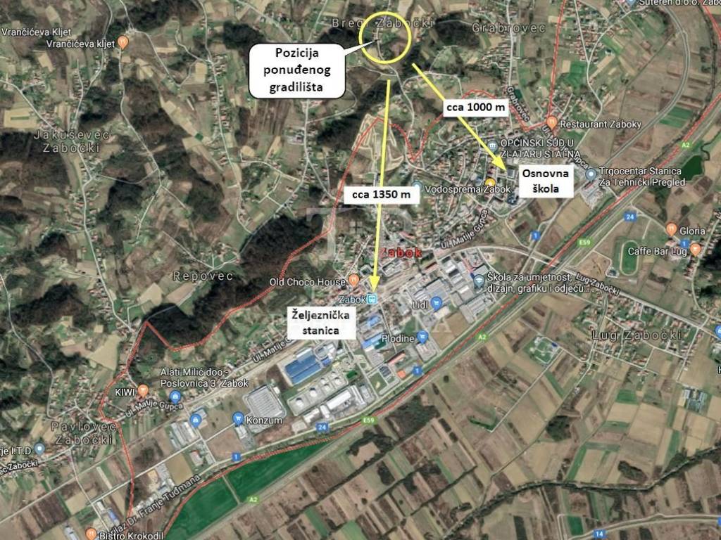 Prodajemo zemljište površine 3.844 m2 od čega je 1.502 m2 u građevinskoj zoni, a u kojoj se nalazi ucrtani objekt od cca 80 m2 kojega u naravi više nema. Parcele se nalaze u blizini kuće na adresi Bregi Zabočki 14.
