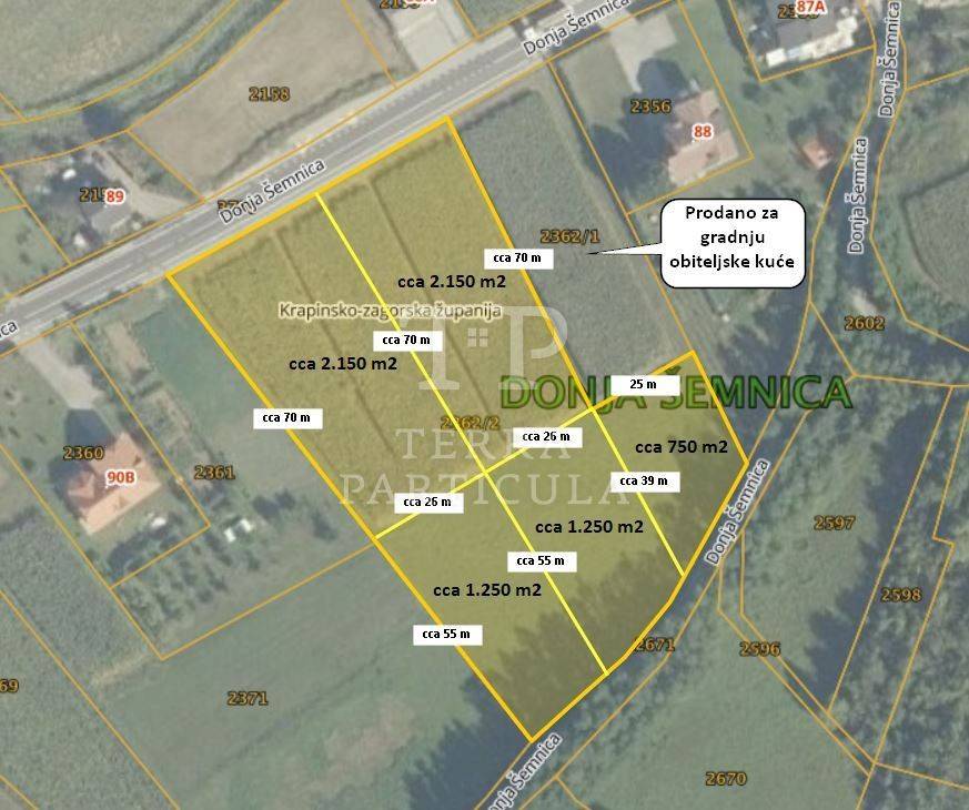 Na prodaju nudimo građevinsko zemljište površine 2.150 m². Nalazi se iz smjera Svetog Križa Začretja prema centru s desne strane iza kuće na adresi Donja Šemnica 90B. U blizini su svi priključci. Moguća kupnja i veće površine. Cijena: 32.250 € 098 251 701