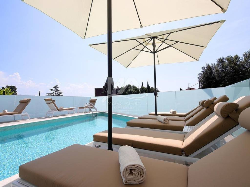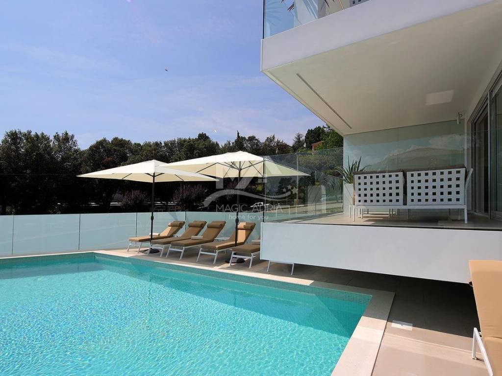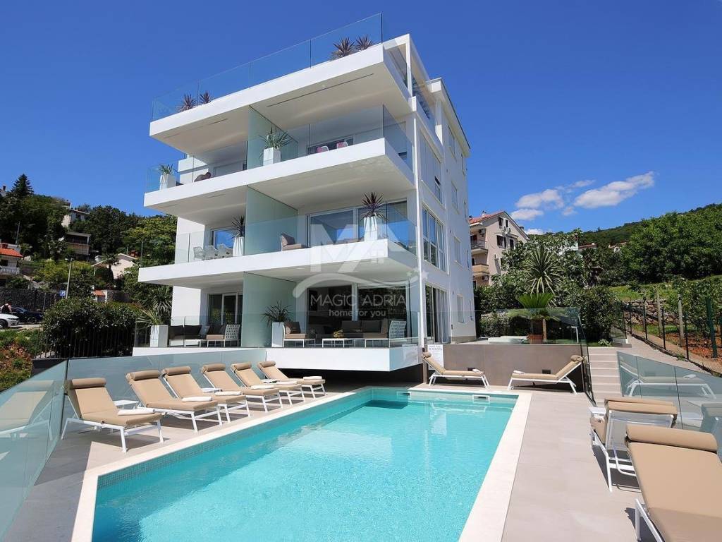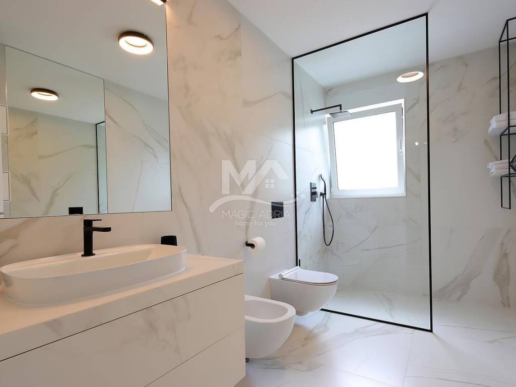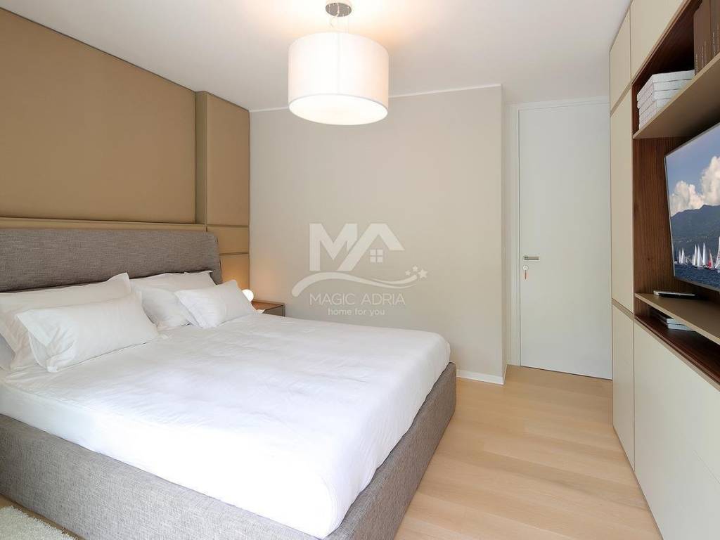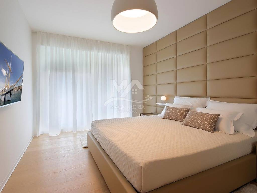 We are selling an apartment on the second floor of a new luxury house. Fantastic location only 100 meters from the beach and the sea. The apartment has 2 bedrooms, 2 bathrooms, kitchen and dining room and living room. Large loggia and open sea view. The apartment also has 2 parking spaces with a total area of 127m2.