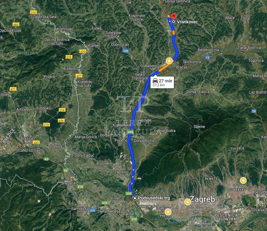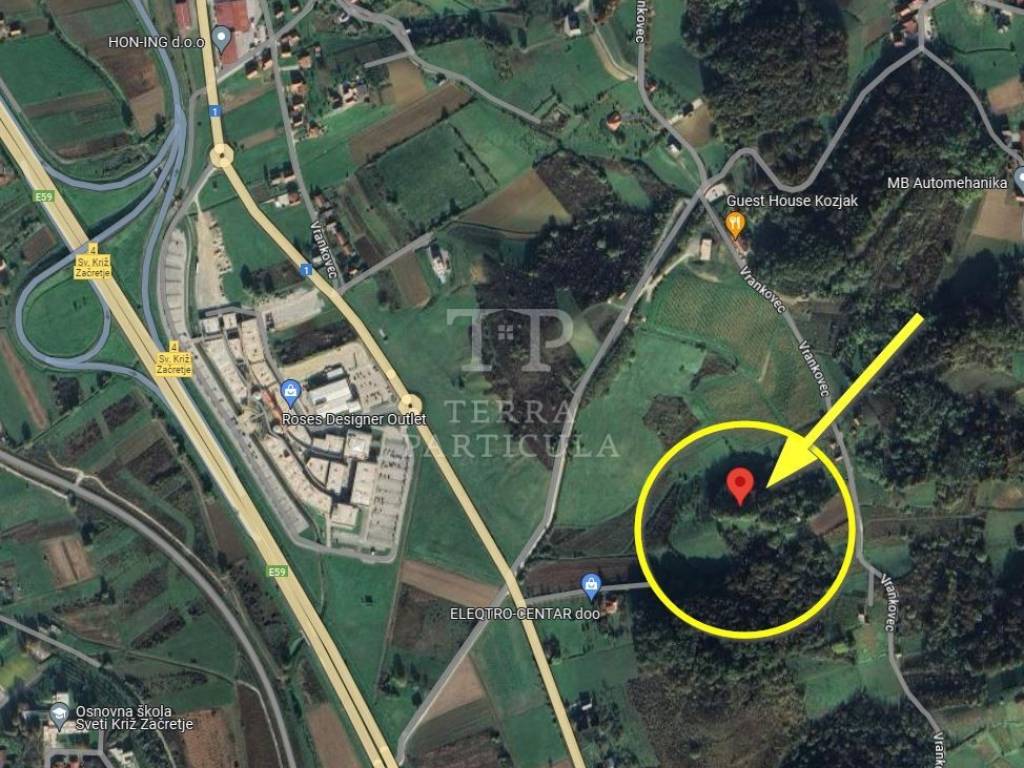 Prodaje se poljoprivredno zemljište (mladi bagrem i oranica), površine od 5.629,00 m², iznad Roses outlet centra u Začretju u neposrednoj blizini restorana Kozjak. Katastarska čestica broj 565/1 i 572/3, k.o. Začretje.