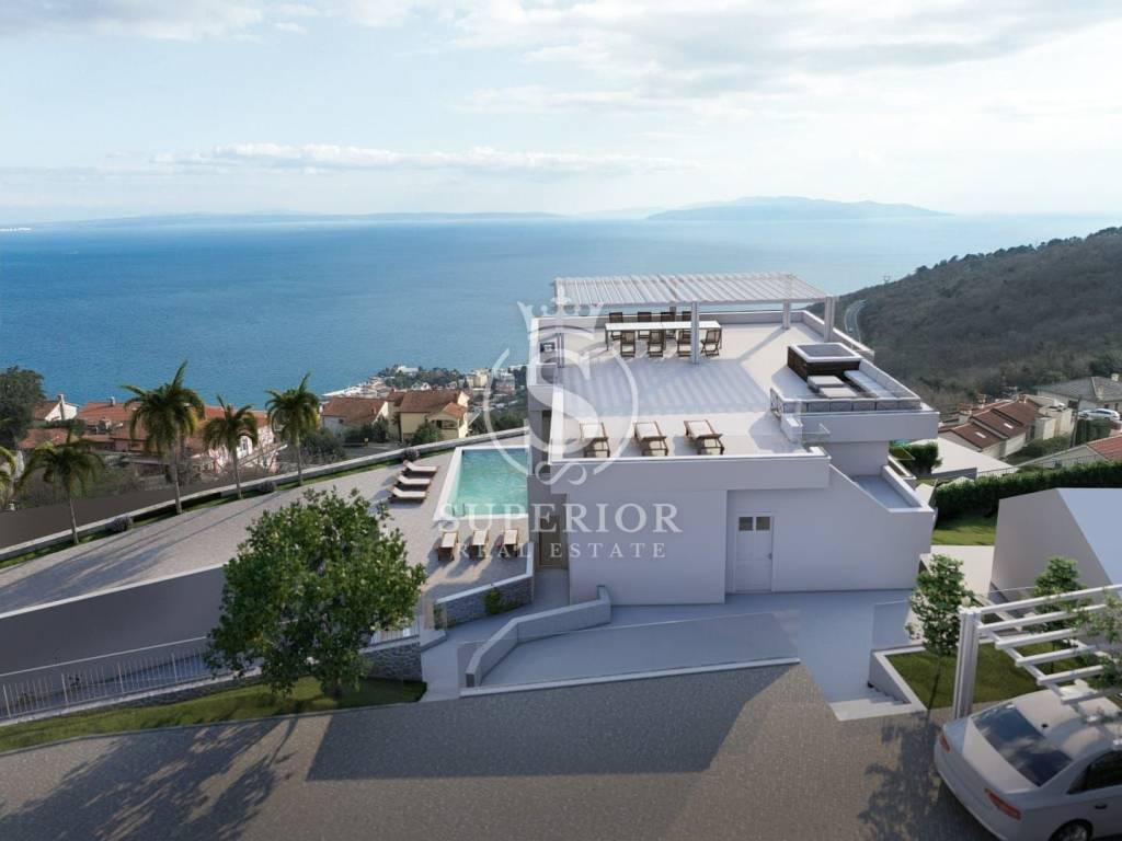 OPATIJA – BREGI | NEW-BUILD WITH POOL AND ROOFTOP TERRACE WITH SEA VIEW Modern 3-bedroom apartment with rooftop terrace, shared pool and breathtaking views of Kvarner Bay