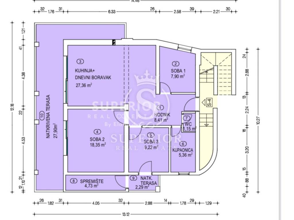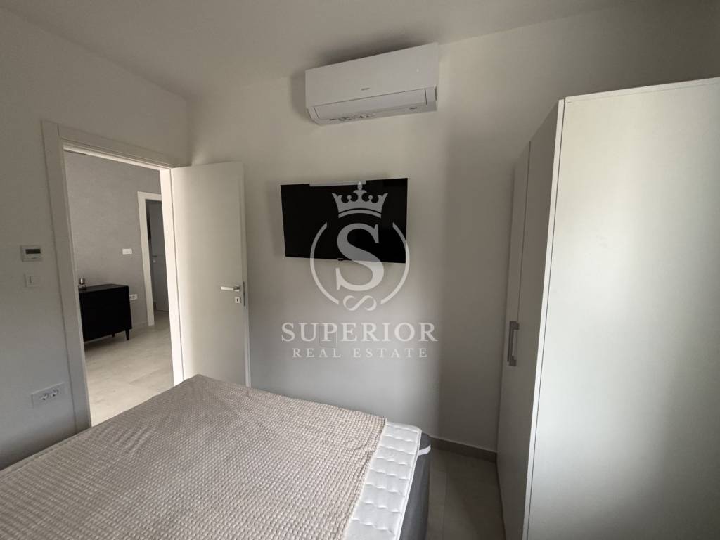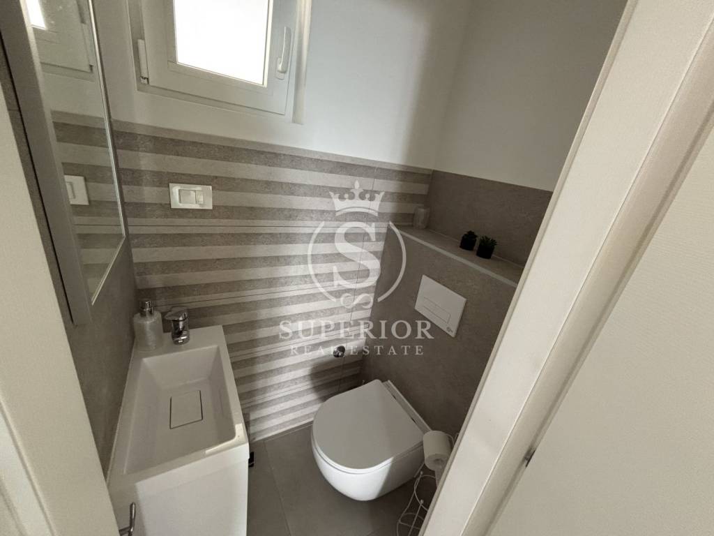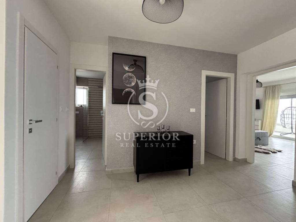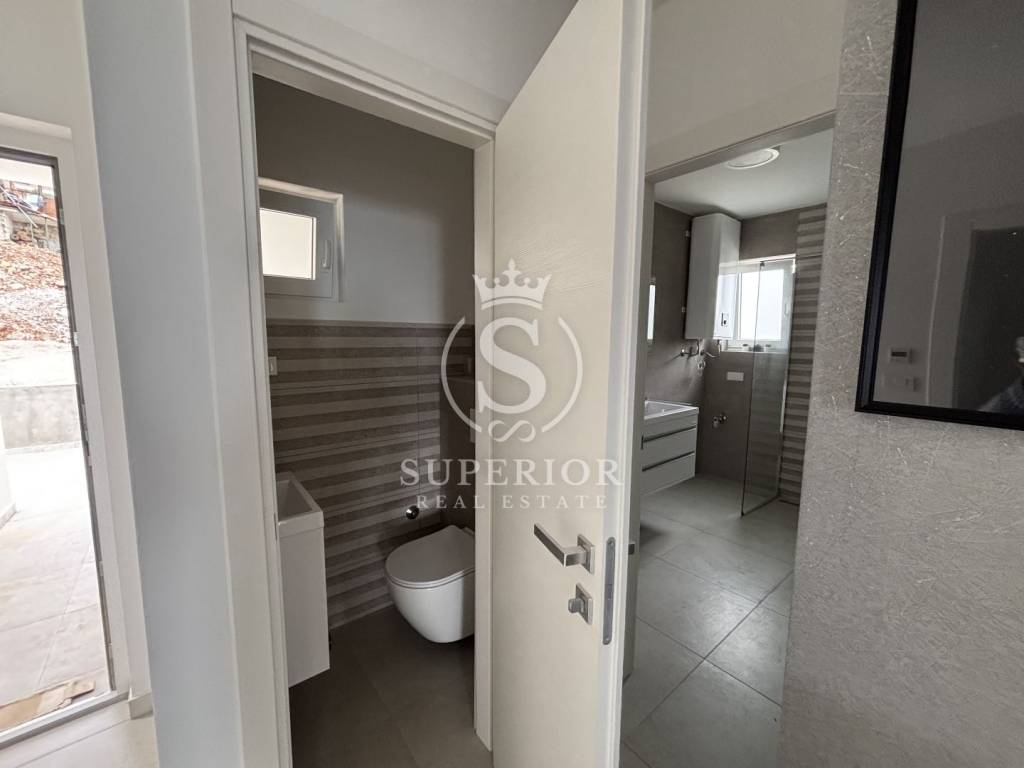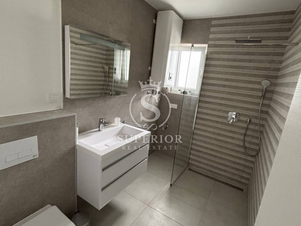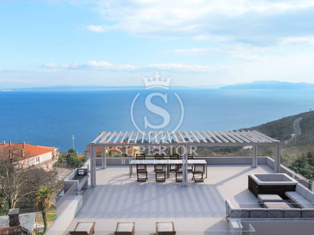 Location: Bregi, Opatija Riviera Living area: 83 m² Layout: 3 bedrooms Living room with access to balcony Modern bathroom Additional toilet 2 balconies Storage 2 side terraces 130 m² rooftop terrace with jacuzzi connections and panoramic sea view Shared pool and sun deck for residents Landscaped garden and courtyard Private parking space Underfloor heating throughout High-quality materials and modern construction PERFECT LOCATION:
