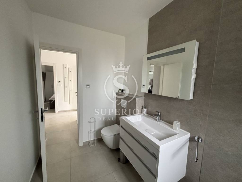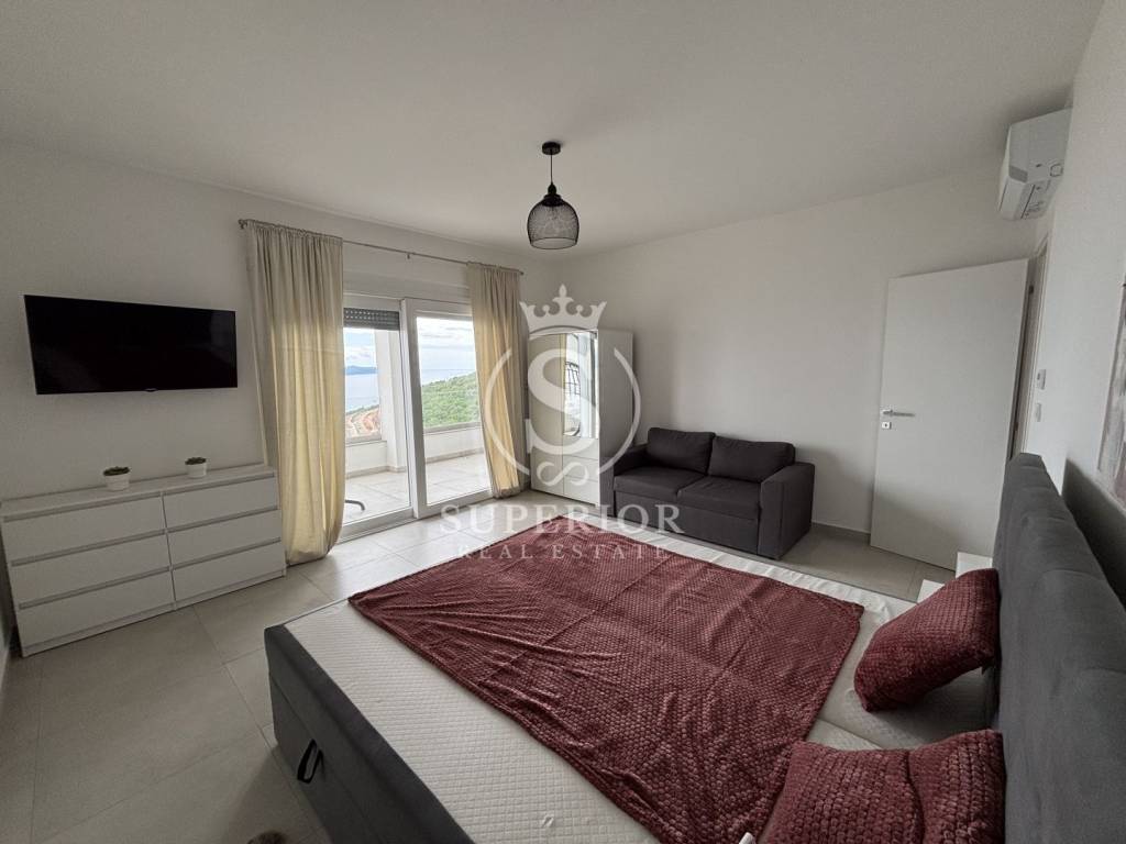 Located in the elite and peaceful residential area of Bregi, just above Opatija, this contemporary apartment combines architectural elegance, functionality and a panoramic sea view that leaves no one indifferent.