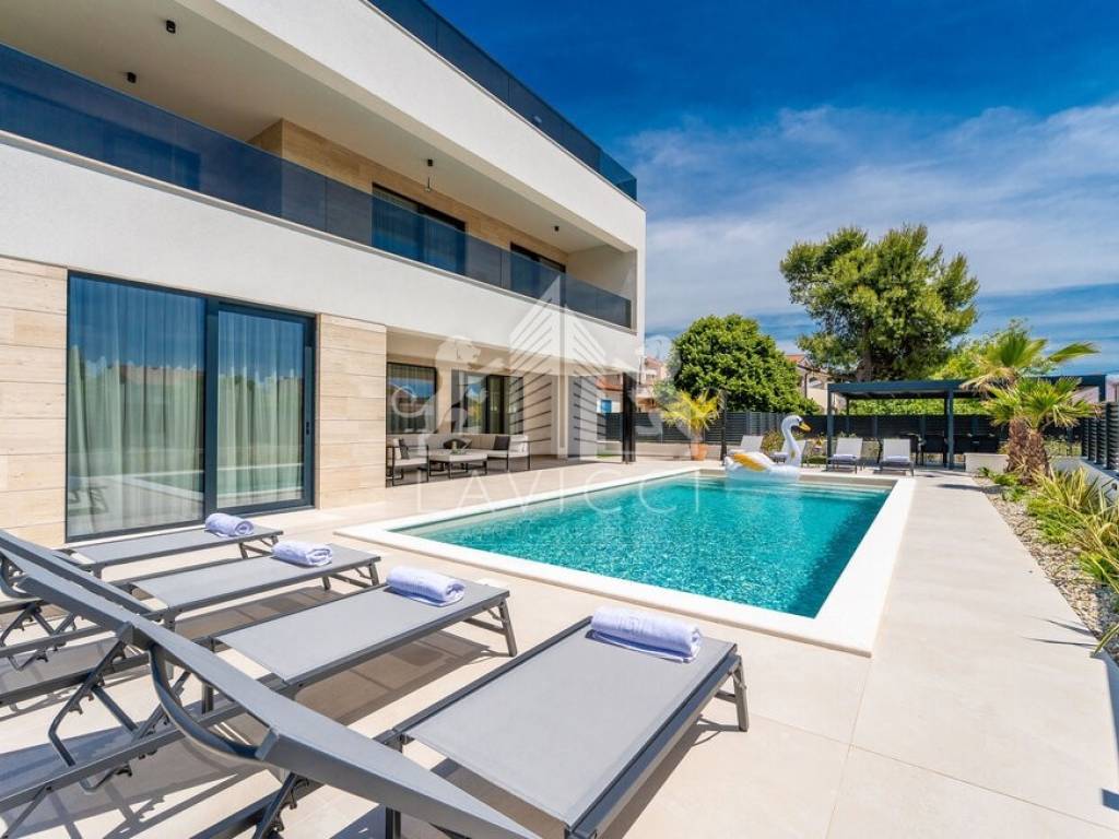 The exterior is decorated with a beautifully decorated and fenced garden with Mediterranean plants with automatic irrigation, a garden pergola, a barbecue and a large swimming pool measuring 9 x 6 m with an electrolysis system. The villa has private parking for several vehicles.