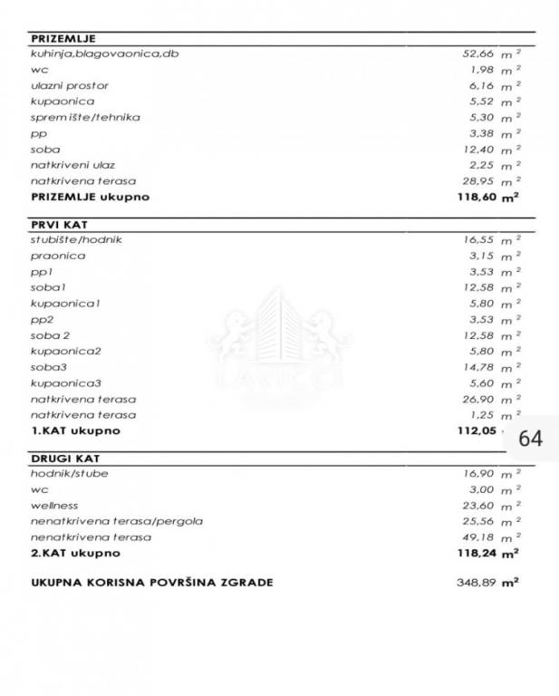 The villa with a total living area of ​​349 m2 is located on a plot of land of 591 m2, only 250 m from the sea and the beach.