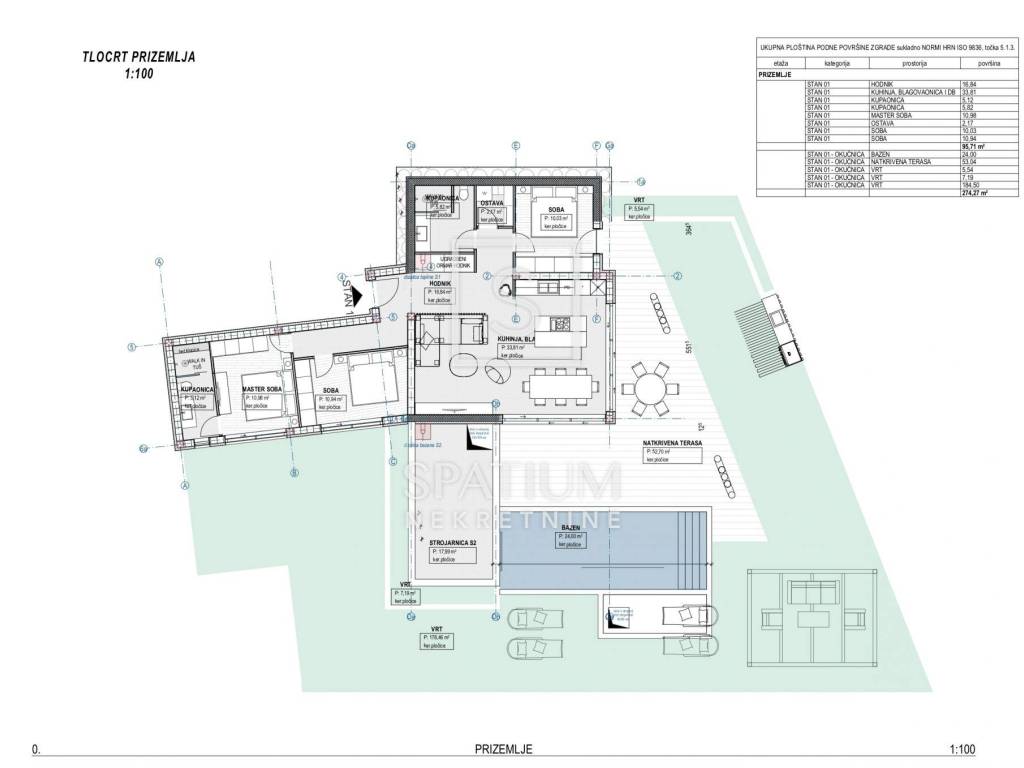 RIJEKA, we are offering a luxurious spacious apartment in a new building with an area of 95.71 m2 of well-designed interior space. Located in a quiet location surrounded by a green belt and only a 2km drive from the city center as well as from all other important facilities. It consists of a kitchen, dining room and living room, pantry, bathroom and three spacious rooms, including a master bedroom with its own bathroom. What makes this apartment particularly attractive is its magnificent garden, which covers an exceptional 274.27 m2, of which 53.04 m2 is a covered terrace. This spacious yard offers a place to relax, entertain or create your own garden paradise. In addition to the heated pool of 24.00 m2, the apartment also has 3 parking spaces and a charger for electric cars. With a thermal facade and underfloor heating from the manufacturer Daikin, a warm home is guaranteed. A heat pump with a hot water tank very efficiently produces enough hot water for consumption. Cooling is A+++ thanks to the most modern technology from the supplier Daikin. 4 internal units are connected to 1 external unit of 8 kw. Heating and cooling is automatically regulated in each room separately. Protection from external influences and heat losses with quality carpentry from renowned suppliers. It should be noted that there is a possibility of individual design and interior decoration of future tenants. Pulac is located in an extremely attractive location in the northwestern part of Rijeka. The hills on which the local board is located have always been strategic places for the rulers of the city on Rječina. They were also inhabited by the Illyrians who built a fortress and their settlements here, since ancient times this area was of exceptional importance for the entire region. Brašćine - Pulac is a local council of the city of Rijeka. For all other information, please contact Robert Žauhar +385 92 177 5404 robert@spatium.hr Spatium nekretnine +385 51 272 903 info@spatium.hr