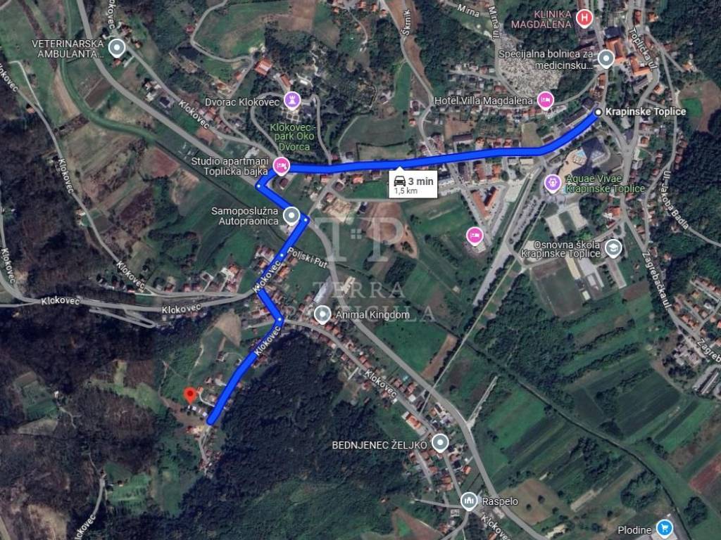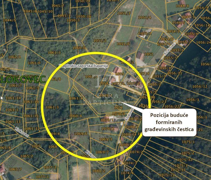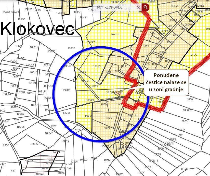 Na prodaju je građevinsko zemljište površine 472 m². Vlasništvo je čisto, 1/1 bez tereta. Nalazi se nasuprot kuće na adresi Klokovec 100 D, Krapinske Toplice. Moguća je kupnja veće površine ili više gradilišta sukladno priloženoj skici. Priključci vode, struje, telefona, odvodnje i plina su uz ponuđeno zemljište.