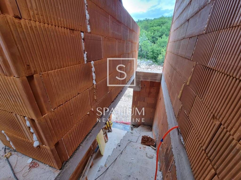 JADRANOVO, CRIKVENICA, we offer a modern, semi-detached new building in Rohbau design. It is located in a quiet part of the city, with an open view of the sea. It consists of a ground floor and a first floor, which are connected by an internal staircase. Ground floor: kitchen, dining room, spacious living room, bedroom with bathroom. Floor: three bedrooms with private bathrooms, each room has a beautiful view of the sea. Inside the garden there is a swimming pool with a sunbathing area, a space for socializing and a parking space. An opportunity to buy, complete and arrange according to your own wishes.