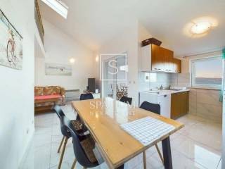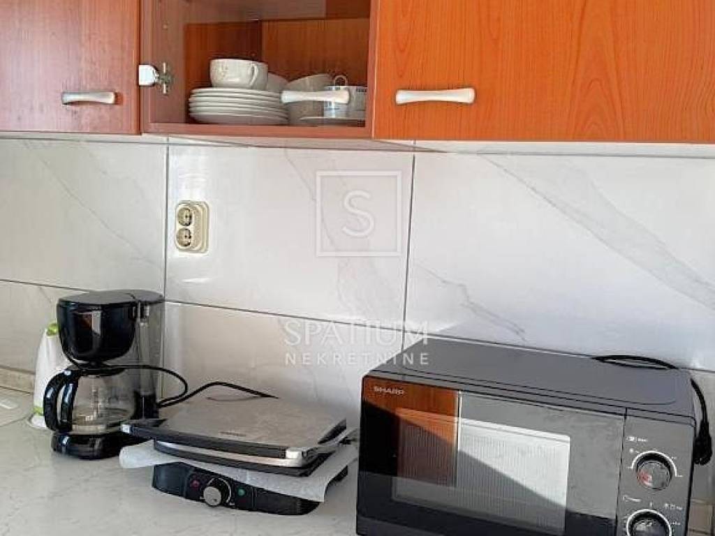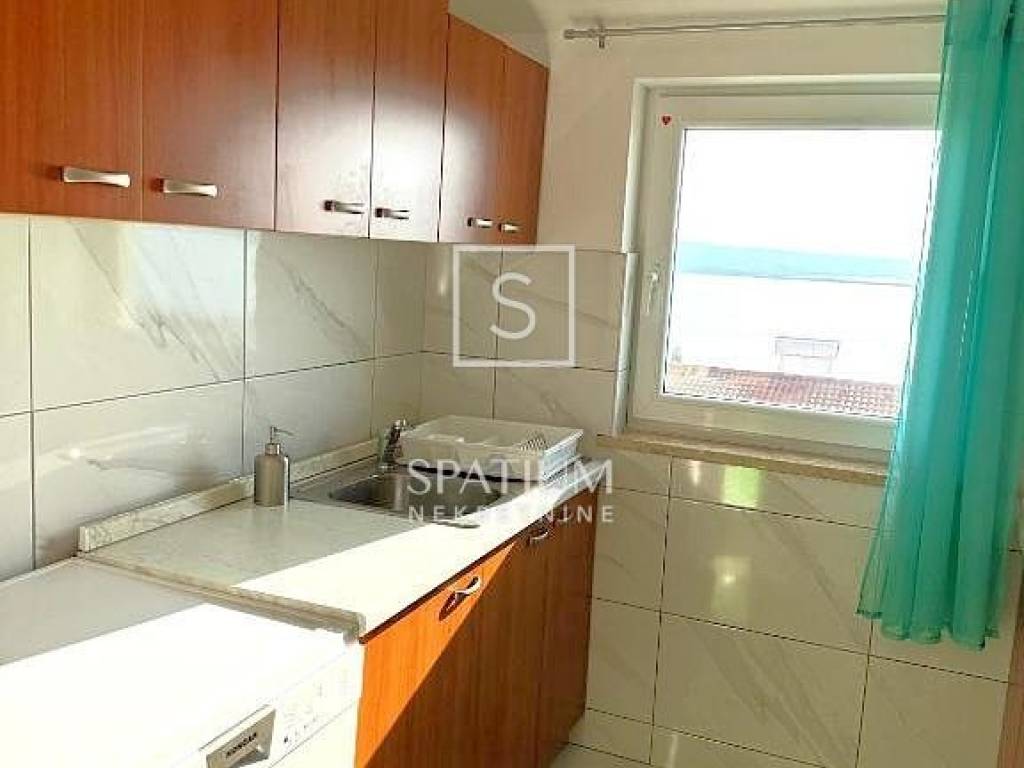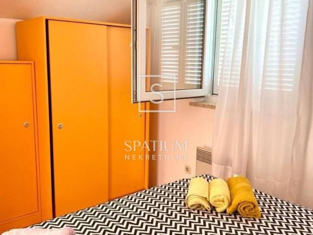 DRAMALJ, we have received a two-story apartment with a total area of 83.50 m2 with a panoramic view. It consists of an entrance hall with a spiral staircase, a living room with a dining room, a kitchen, two bedrooms and a bathroom. The gallery, which consists of one room, a toilet and a storage room, has an area of 21.97 m2. It contains a loggia and a terrace, facing south, which ensures plenty of natural light throughout the day. Only 500 meters from the sea and 300 meters from the center. The property is being sold fully furnished and has an associated parking space. Due to its microlocation, this is an ideal opportunity for family life, vacation or investment for tourist rental. The apartment is in the attic with a gallery marked with the letter G, painted black, consisting of I. an entrance hall with a spiral staircase, living room + dining room, kitchen, two bedrooms, bathroom, loggia and terrace with a net area of 61.53 m2 II. gallery consisting of a gallery, room, toilet and storage room with a net area of 21.97 m2 (which amounts to a total of 83.50 m2)