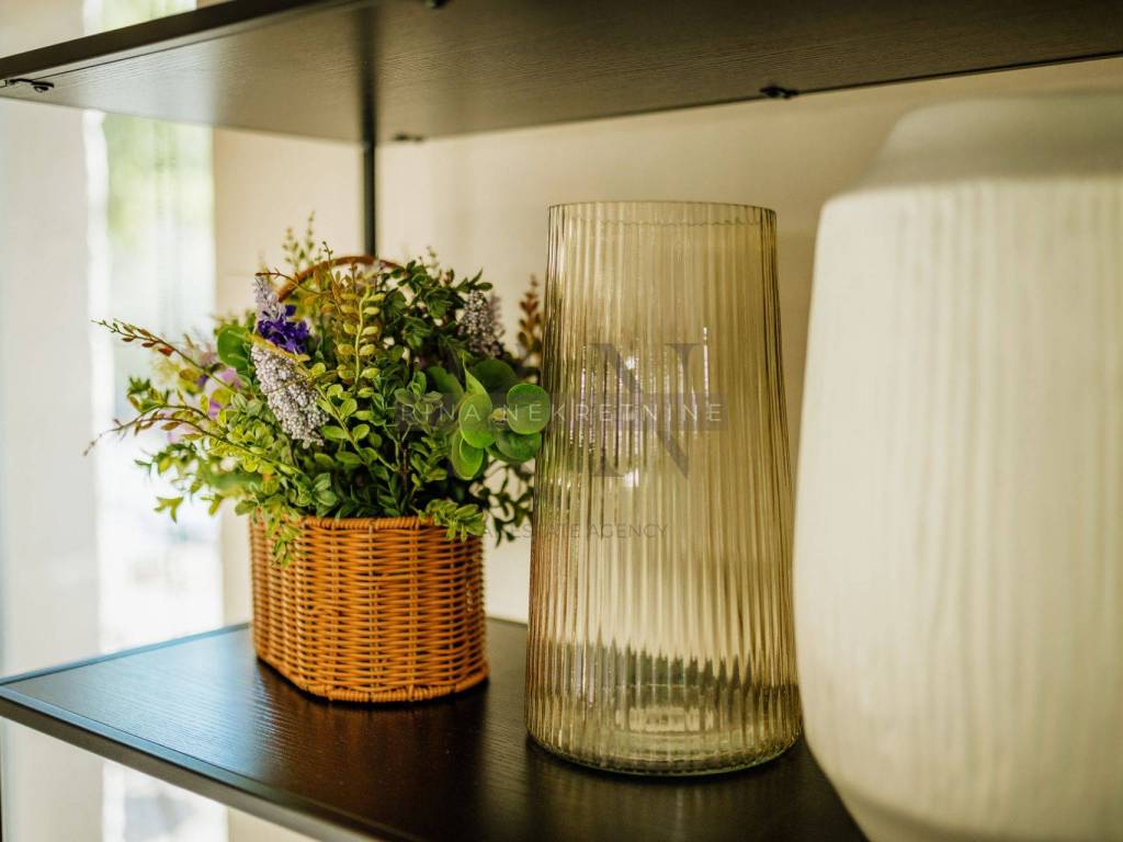The villa is equipped with thermal insulation, aluminum joinery, underfloor heating and air conditioning units in all rooms. It is furnished with exceptionally high-quality custom-made furniture. With a lot of style and good taste! The villa is habitable, fully equipped and ready for guests or the future owner.