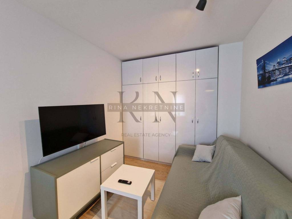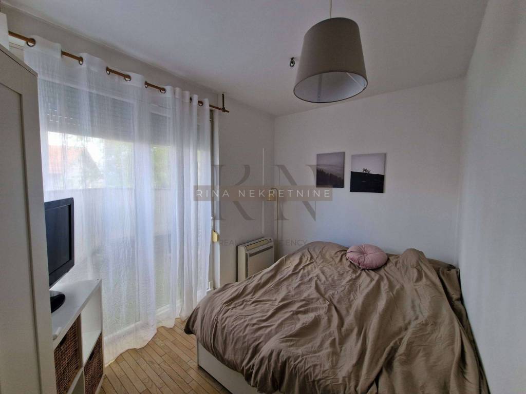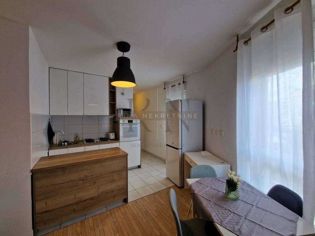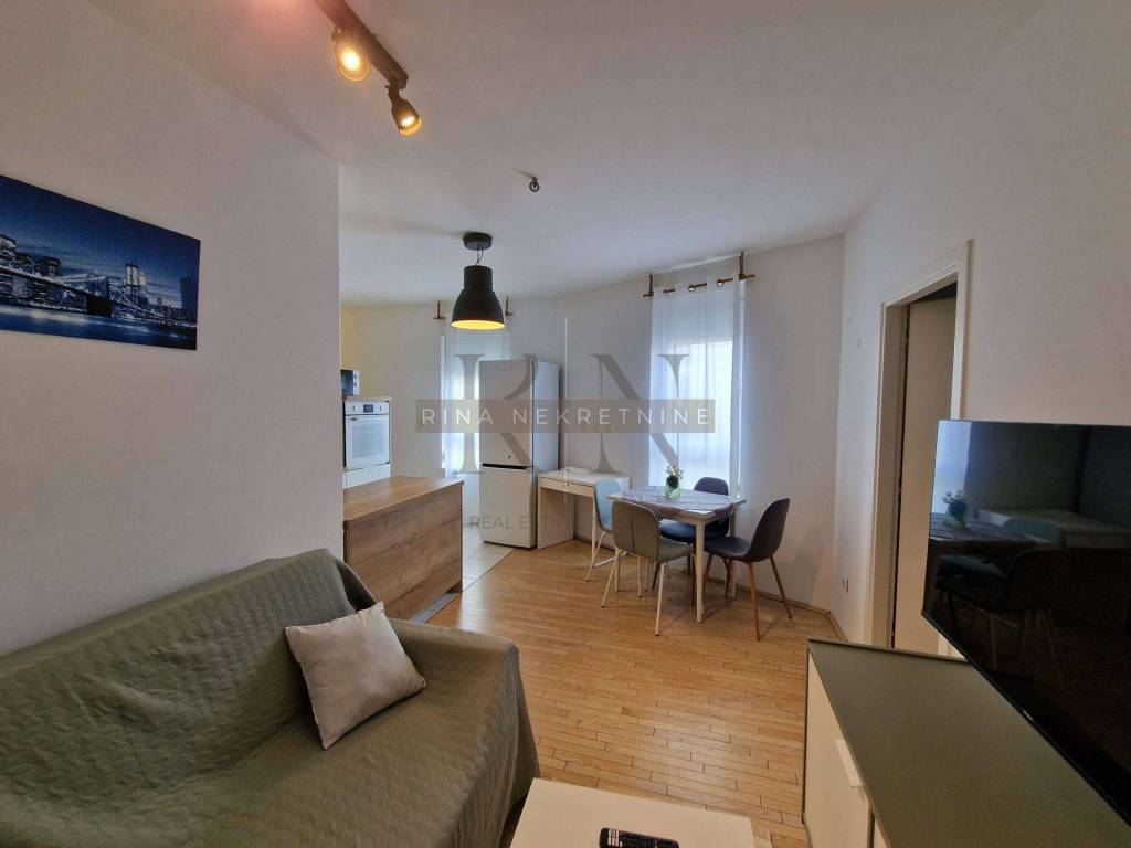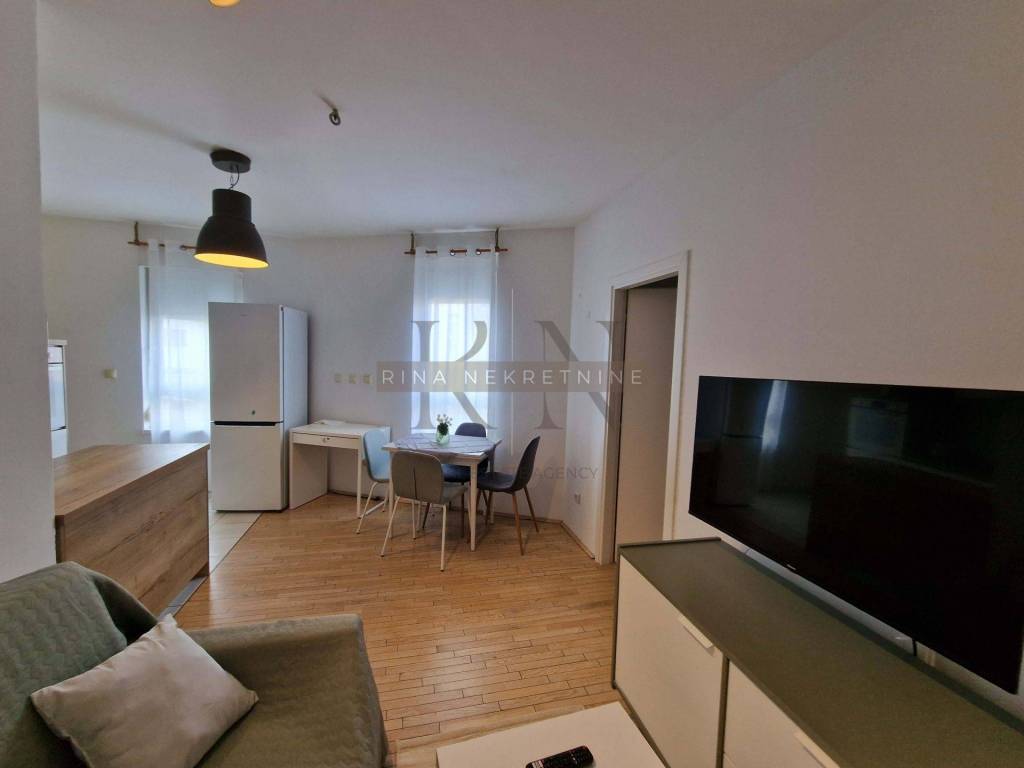 Zagreb, business zone settlement Otok-Sv. Klara, Ivice Drmića, building built in 2016. Fully equipped and furnished two-bedroom apartment for rent (has a separate bedroom) and with its own designated garage parking space (14.50 m2) on the -2 floor.