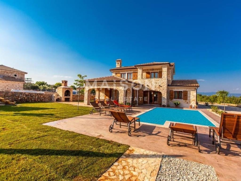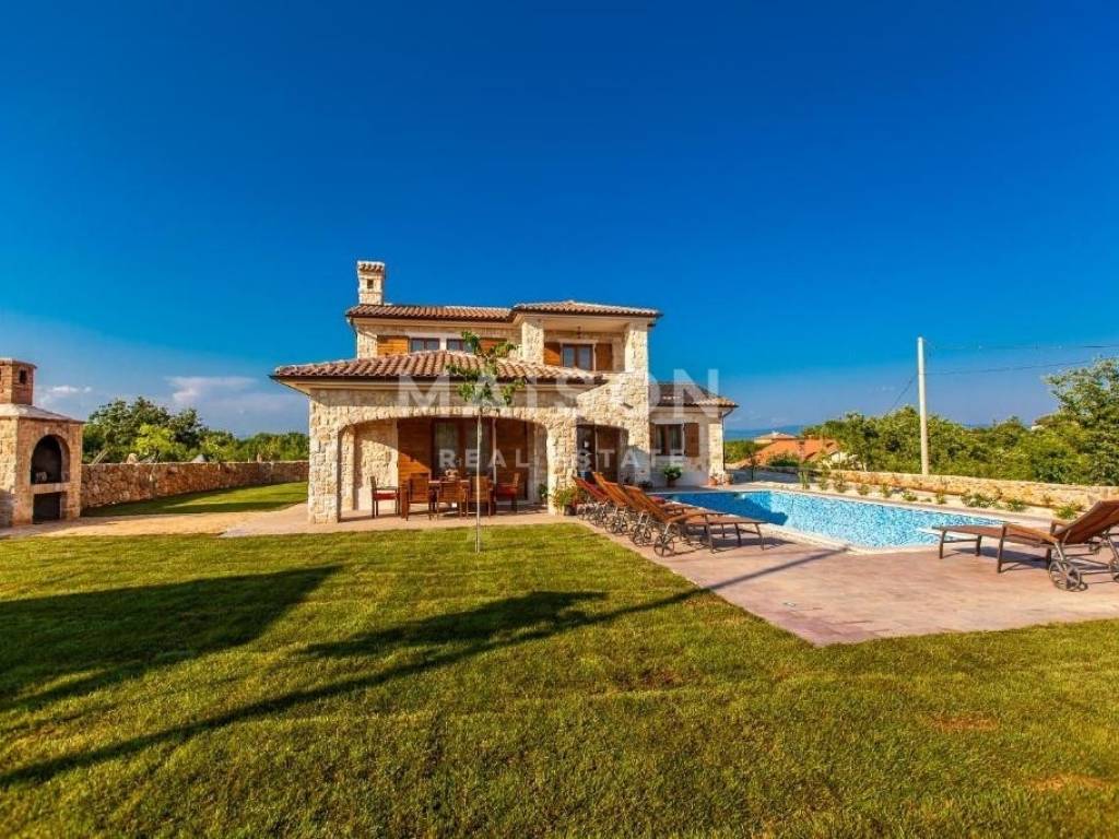 For sale: A luxurious rustic stone villa with a spacious garden on the island of Krk. Situated in a peaceful location just 5 km from the sea and beaches, this villa offers the perfect combination of privacy, comfort, and Mediterranean charm.