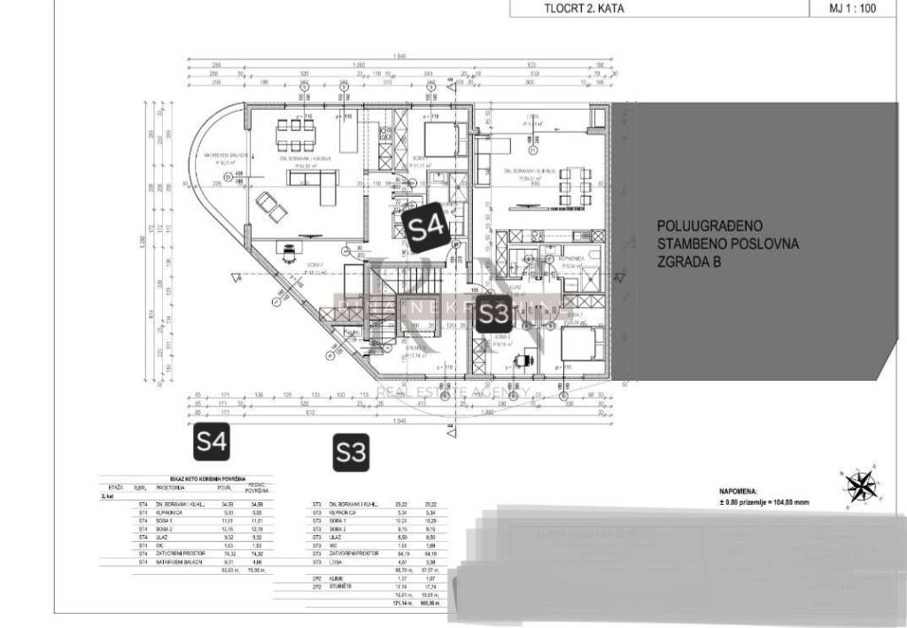 The apartment S3, is located on the the 2 floor of Building A, with a total area of 67.57 m², and consists of: