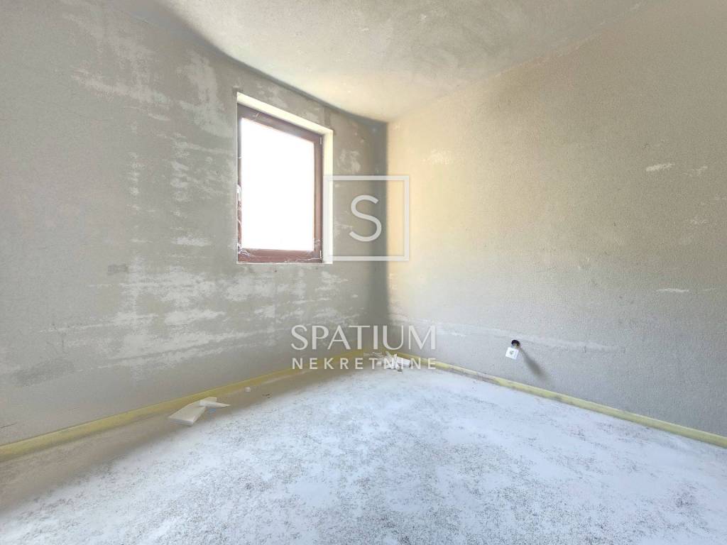 BUNICA, SENJ, we offer an apartment in a new building only a hundred meters from the sea. It consists of a kitchen with a living room, two bedrooms, two bathrooms and a loggia with a beautiful sea view. It has a storage room on the ground floor and a covered parking space. The apartment is in an advanced unfinished stage and it is necessary to install floor coverings and sanitary facilities, so the buyer will be able to decorate the interior to their taste. An ideal property for lovers of peaceful surroundings. The apartment has an excellent layout and the biggest advantage is the two-minute walking distance to a beautiful beach.