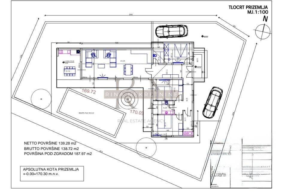 Located on a landscaped plot of 650 m², the villa with a total area of 140 m² consists of: • Spacious open space living room with kitchen and dining room (43.25 m²) • Three comfortable bedrooms • Two modern bathrooms • Laundry room • Covered terrace with summer kitchen and access to the sundeck