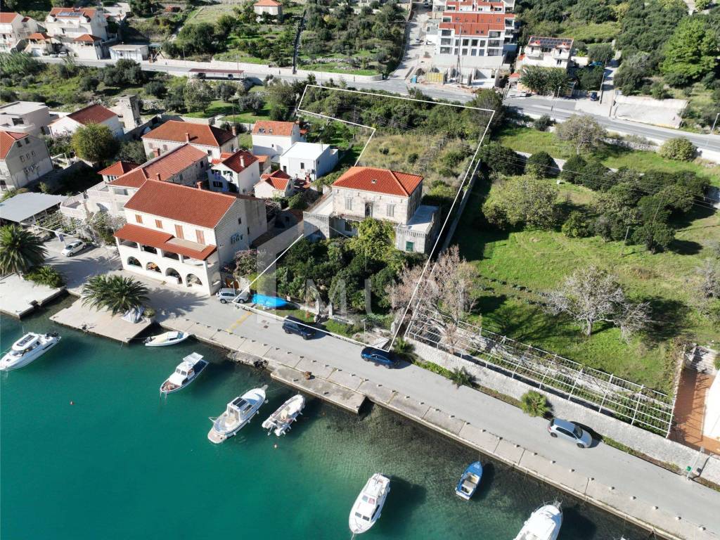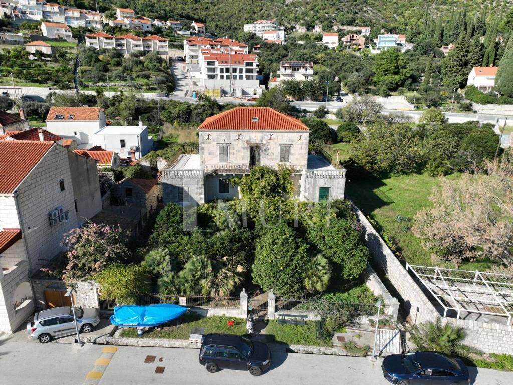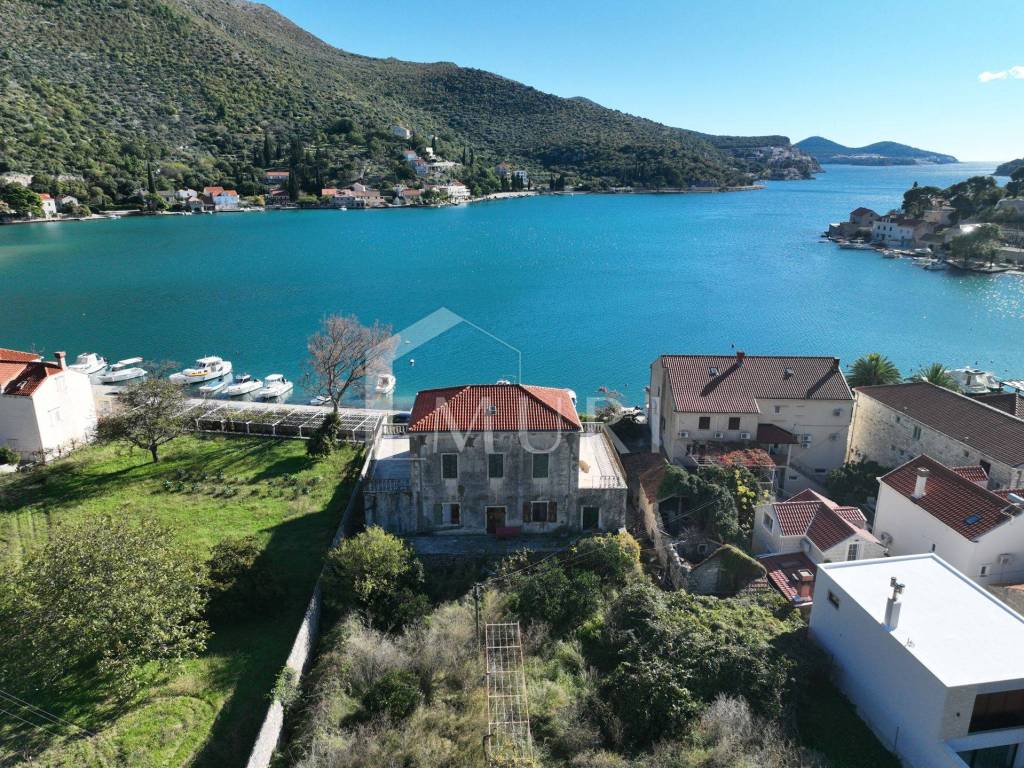 19th-century mansion in Zaton, near Dubrovnik. Stone villa of 600 m² on 3 floors with beautiful terraces and Mediterranean style, first row to the sea. Spectacular sea view, dock in front for private mooring. On a plot of 3198 m² with a garden and trees of indigenous bitter oranges from Dubrovnik. In need of renovation.