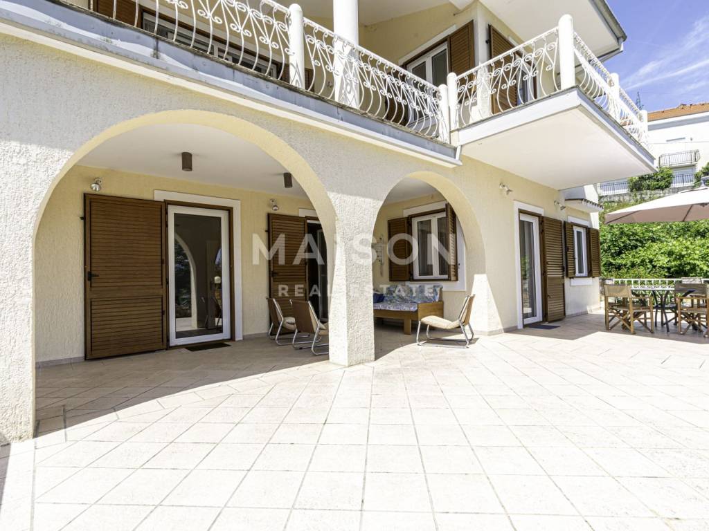 Large terraces offer an open view of the sea and Kvarner Bay, creating an ideal setting for morning coffee or relaxing at sunset. The house is equipped with underfloor heating via a heat pump, and air conditioning units ensure a pleasant temperature throughout the year.