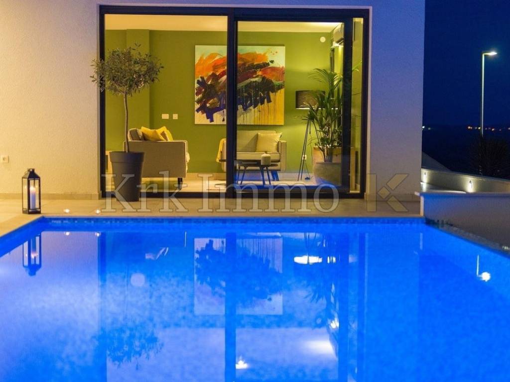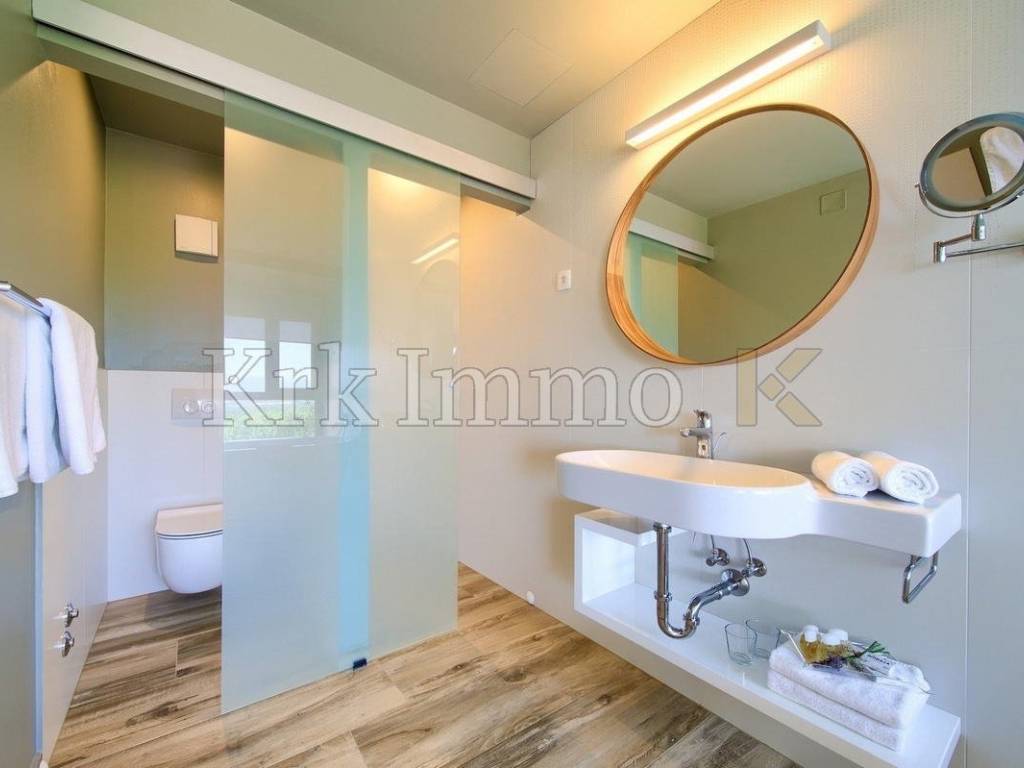 Fore sale is an imposing detached luxury villa, which covers an area of 223 m2, spread over three floors, and is located in the quiet surroundings of the town of Krk. In the basement of this villa, there is a real oasis of relaxation - a wellness area with a Finnish sauna, a bathroom, a boiler room and additional storage. This is a place where you can escape from the hustle and bustle of everyday life and devote yourself to your own well-being.