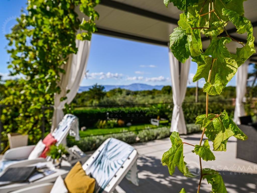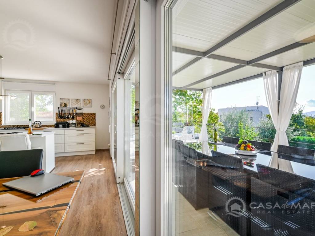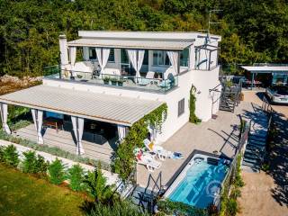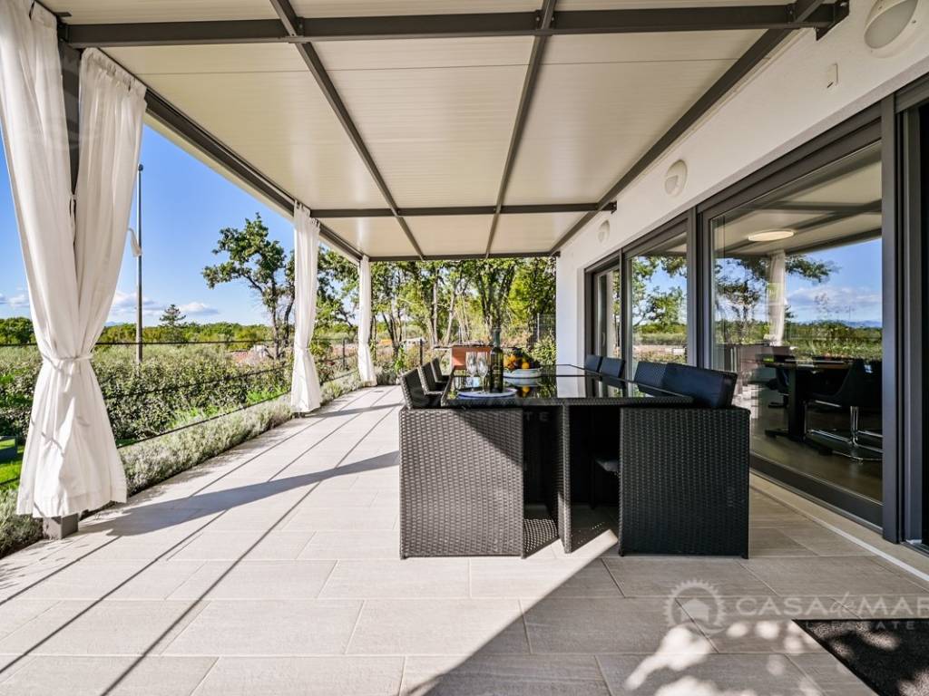 The villa is constructed using high-quality materials, in a prefabricated modular construction manner, which means excellent insulation (Energy Certificate A+), high seismic safety, and a pleasant natural living atmosphere indoors. It is equipped with electric aluminum shutters, anti-burglary entrance doors, and triple-layered anti-burglary glass on all openings.