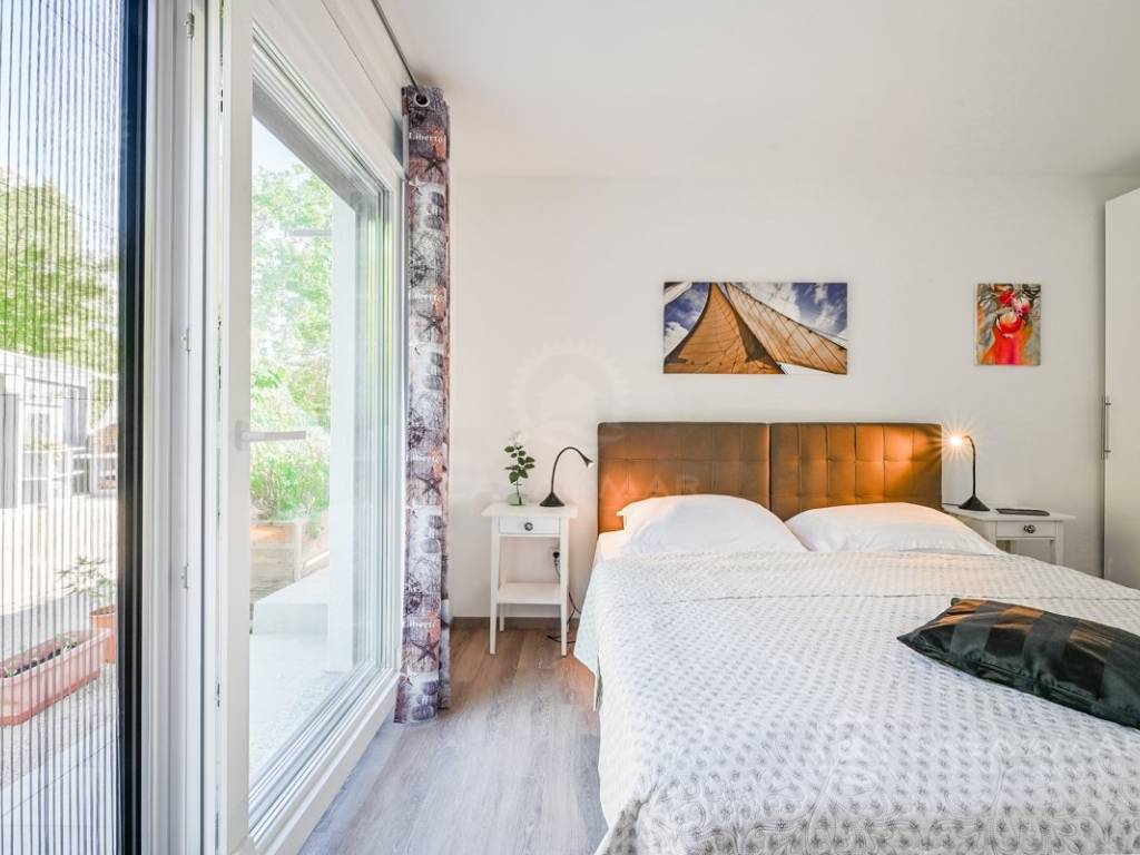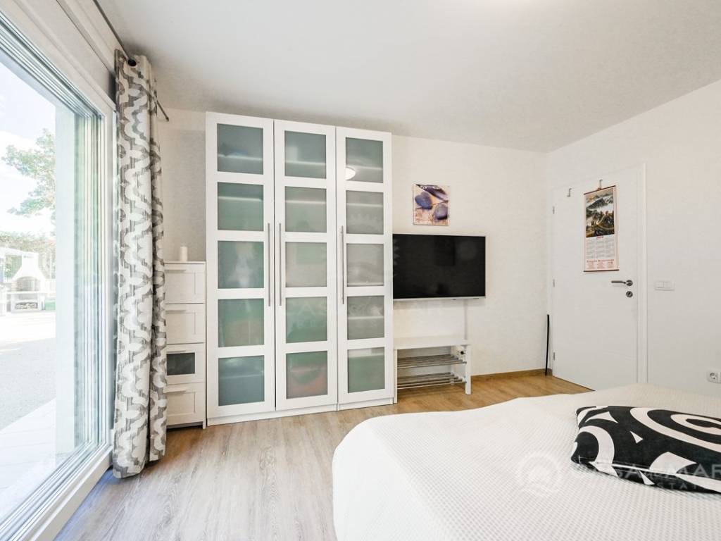The yard of 918 m2 is completely fenced and decorated with Mediterranean plants, and the new owner has at his disposal up to five parking spaces inside the fence.