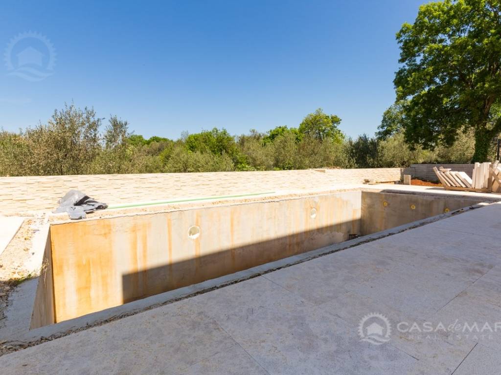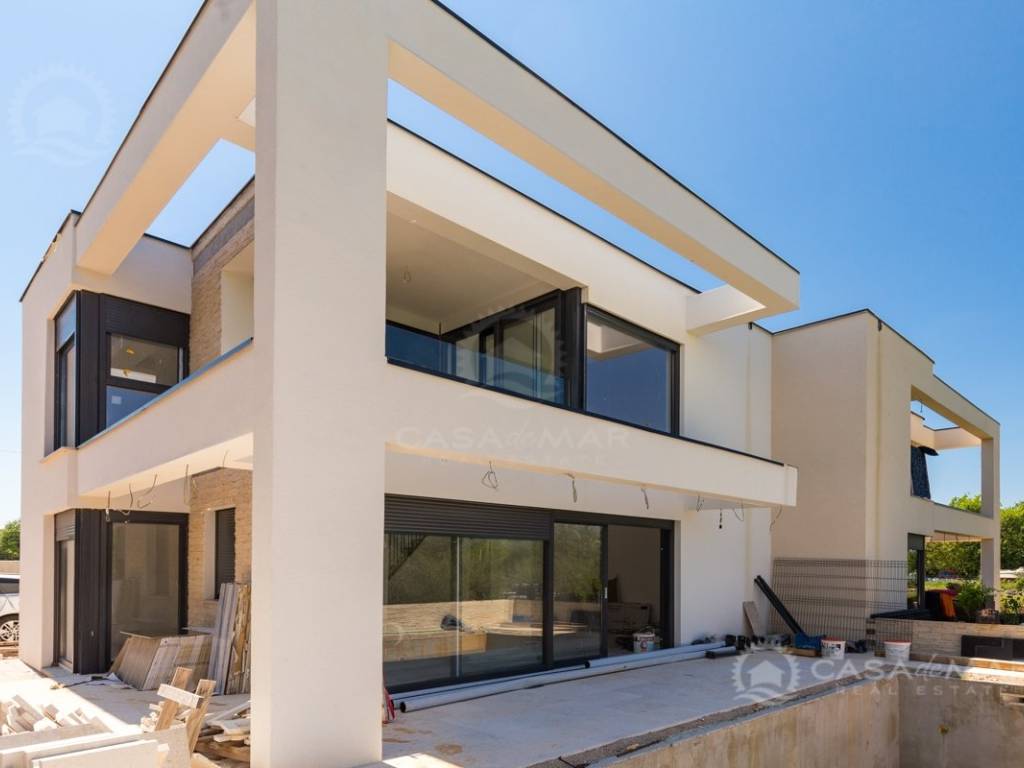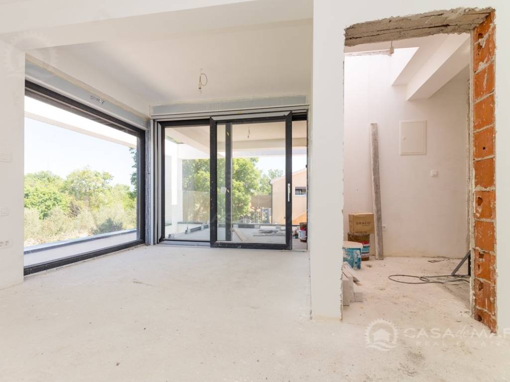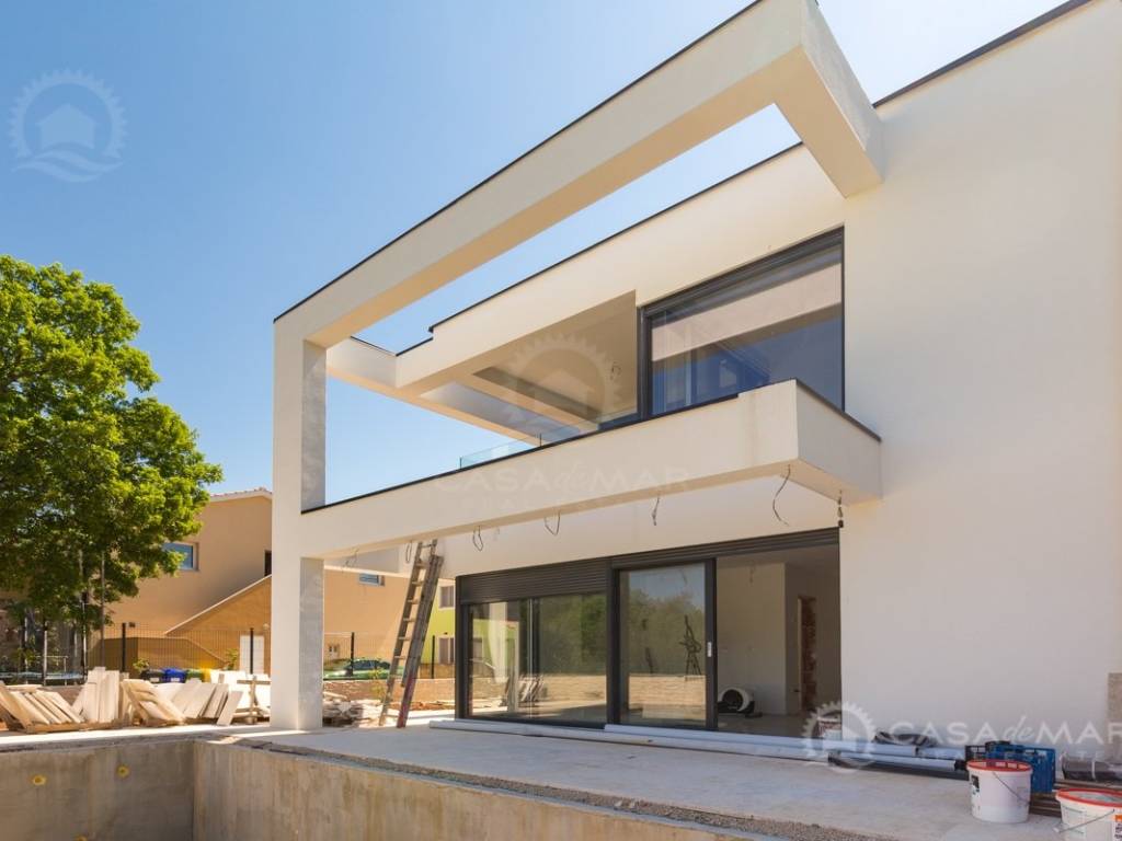 Modern semi-detached house under construction consisting of a basement, ground floor and 1st floor. The ground floor has a living room and kitchen, hallway, bathroom, bedroom and large terrace with garden and pool (3.5 m x 7 m). Upstairs are 2 bedrooms, 2 bathrooms and a terrace. The house is built with quality materials, will be air conditioned and will have underfloor heating. There are 2 parking spaces in the garden. The distance from the sea can vary depending on whether you go by car or on foot. This new property is located in a quiet location and will be ideal for personal use as well as for rent during the tourist season.